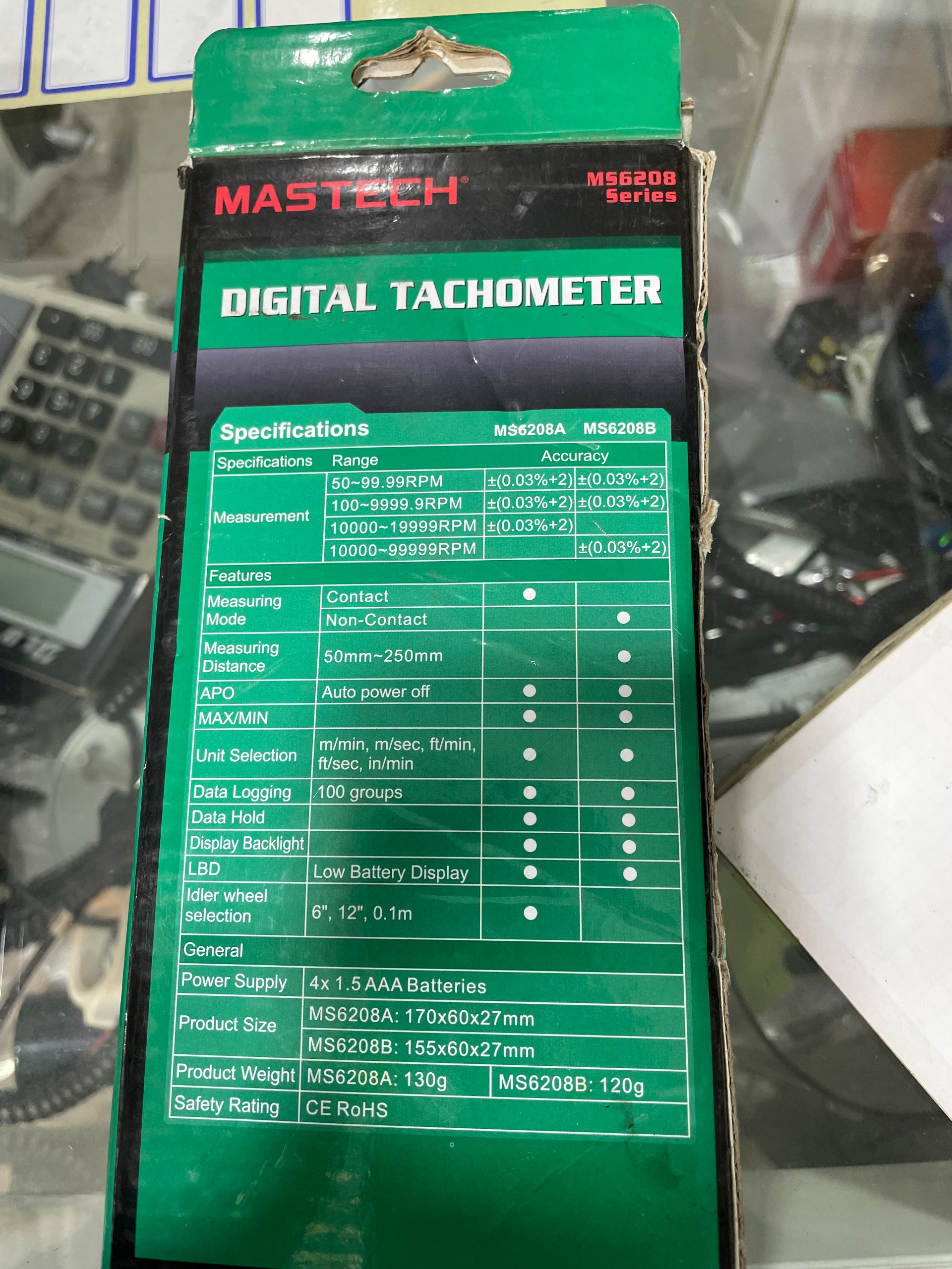 تاکتومتر و دورسنج غیرتماسی نوری و لیزری مستک مدل MS6208B نو و آکبند با جعبه و تجهیزات کامل