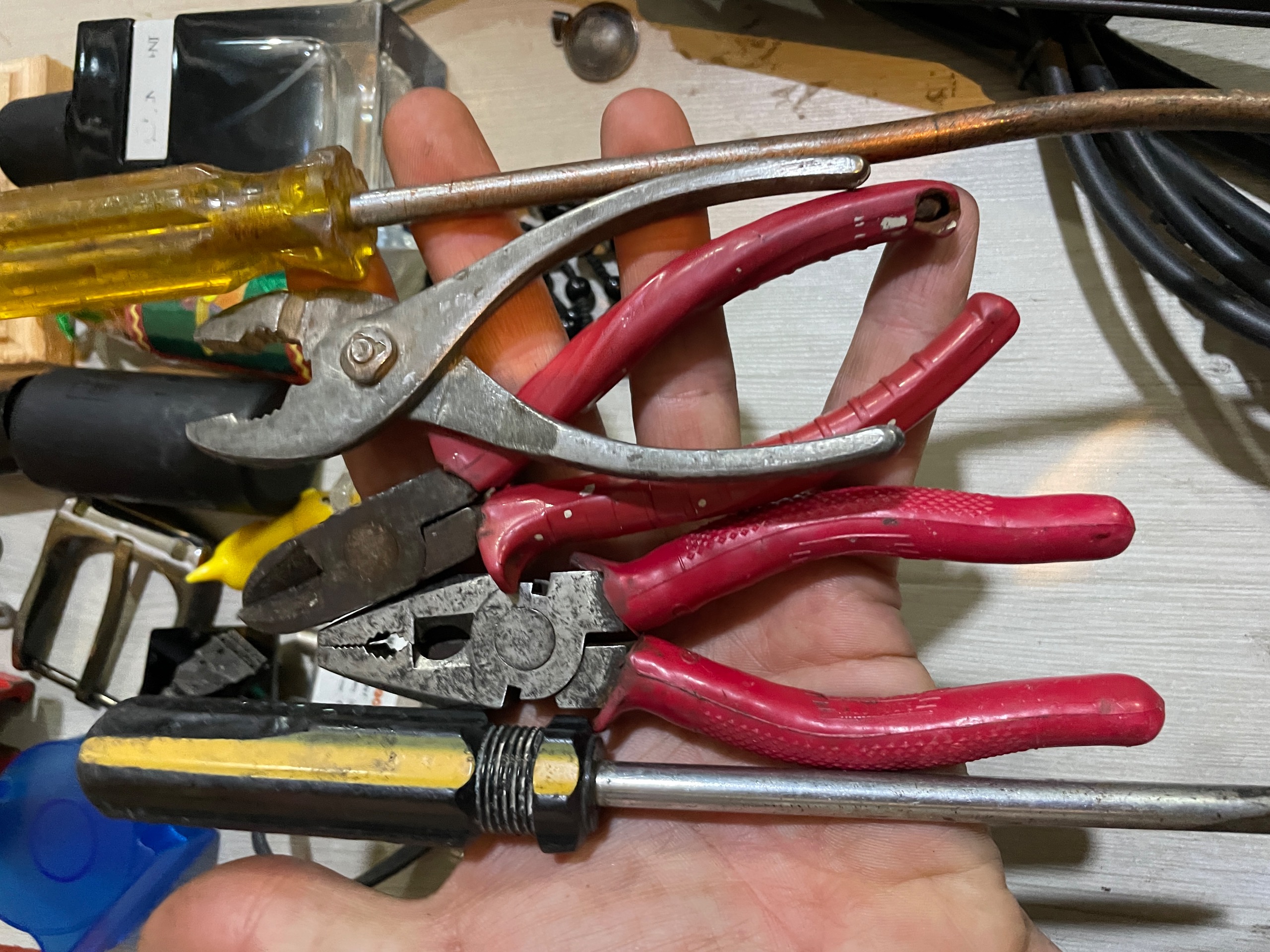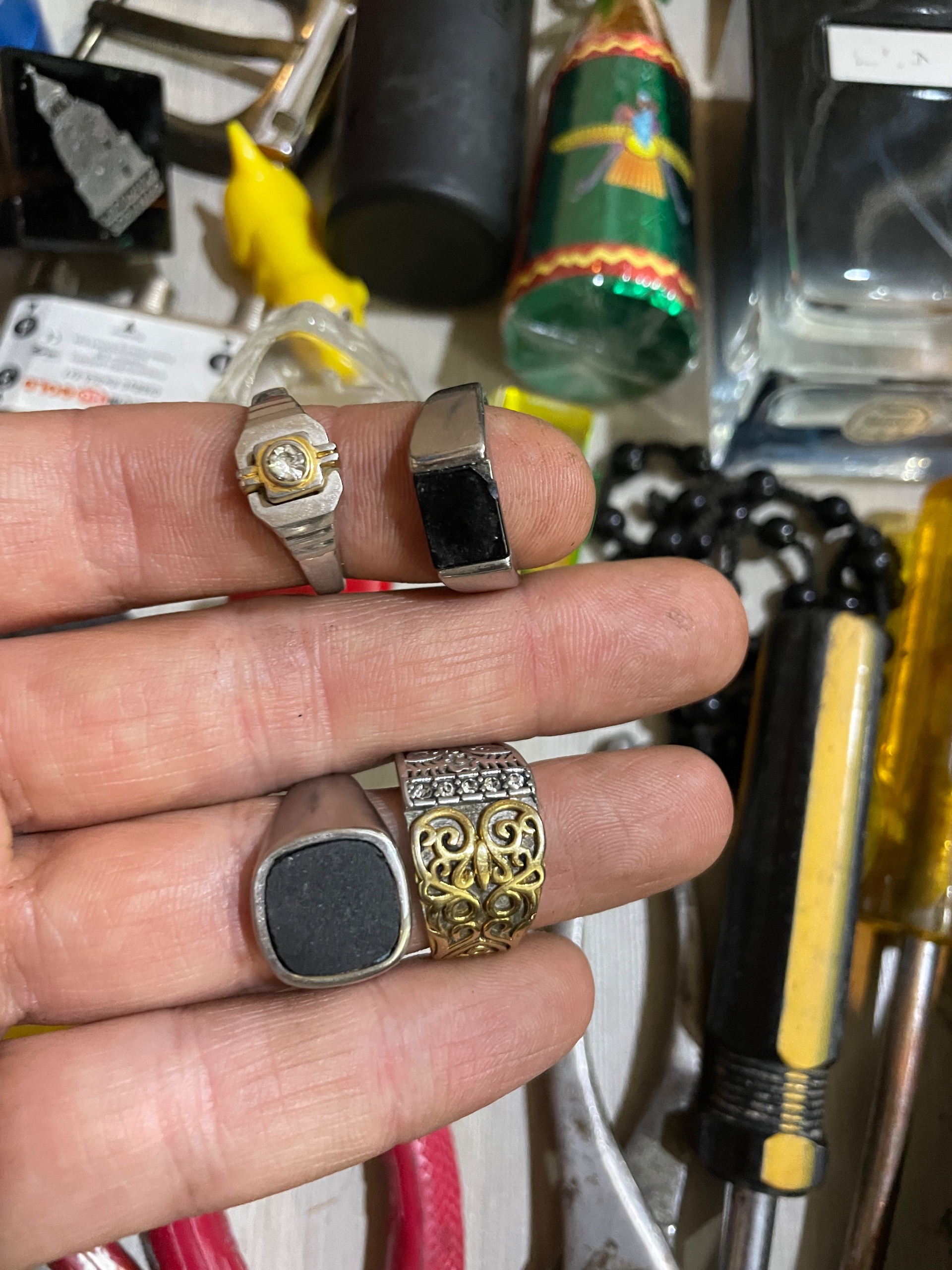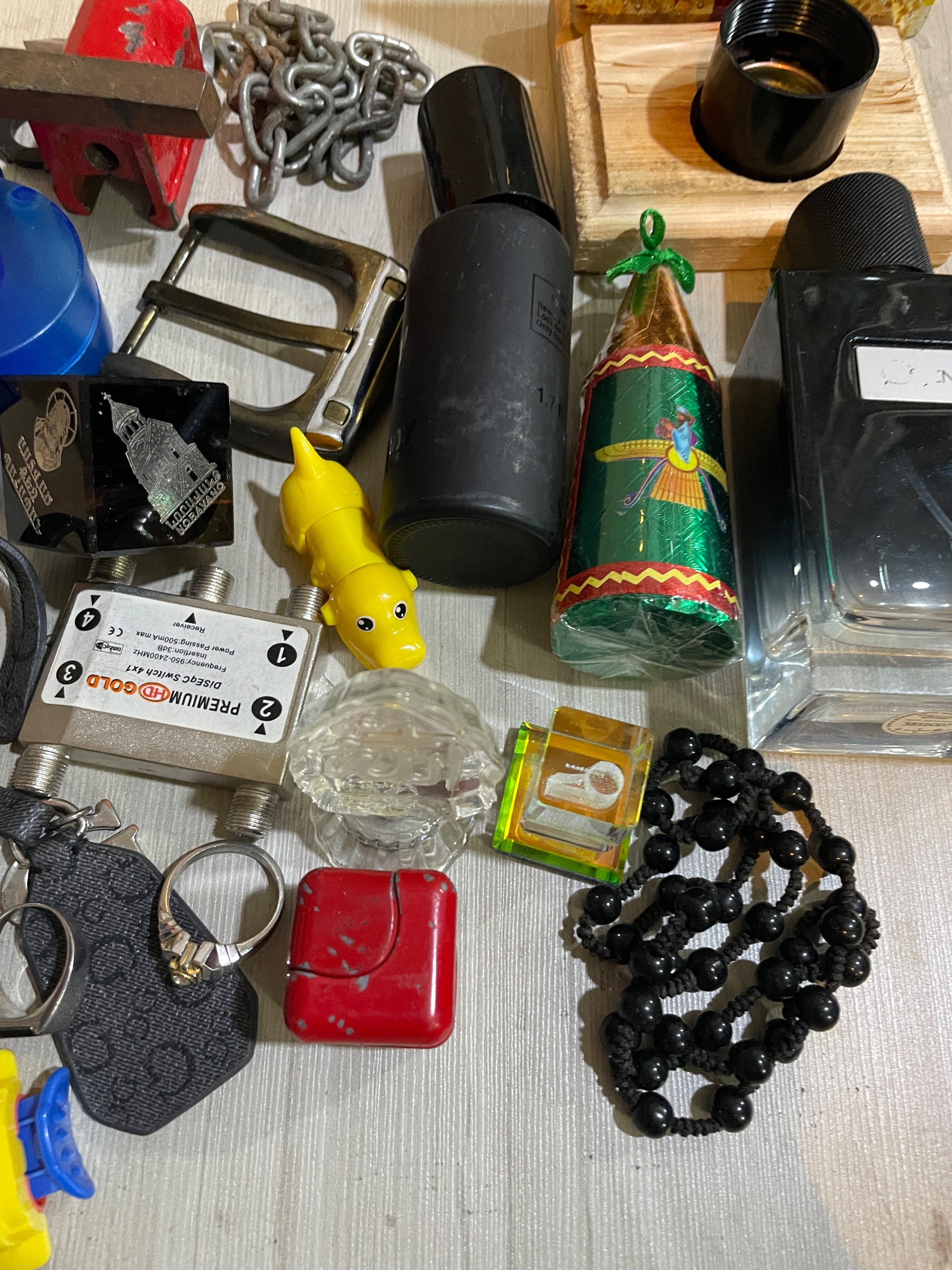 سیم چین/انبر دست دو عدد/ زنجیر / تعدادی انگشتر/ اسپینر/ تعدادی نماد شهر ها/و کلی لوازم دیگه