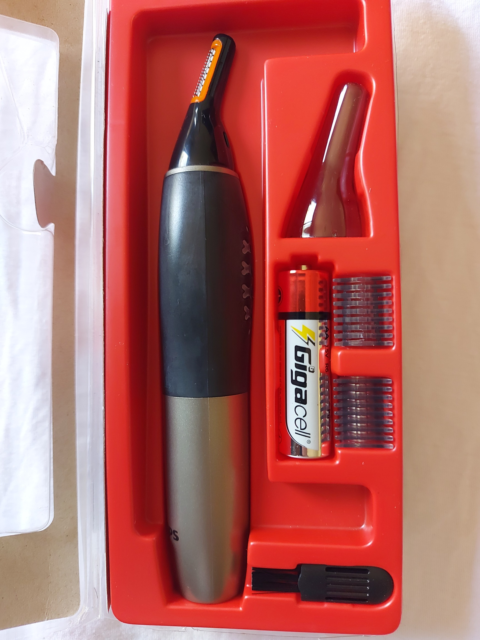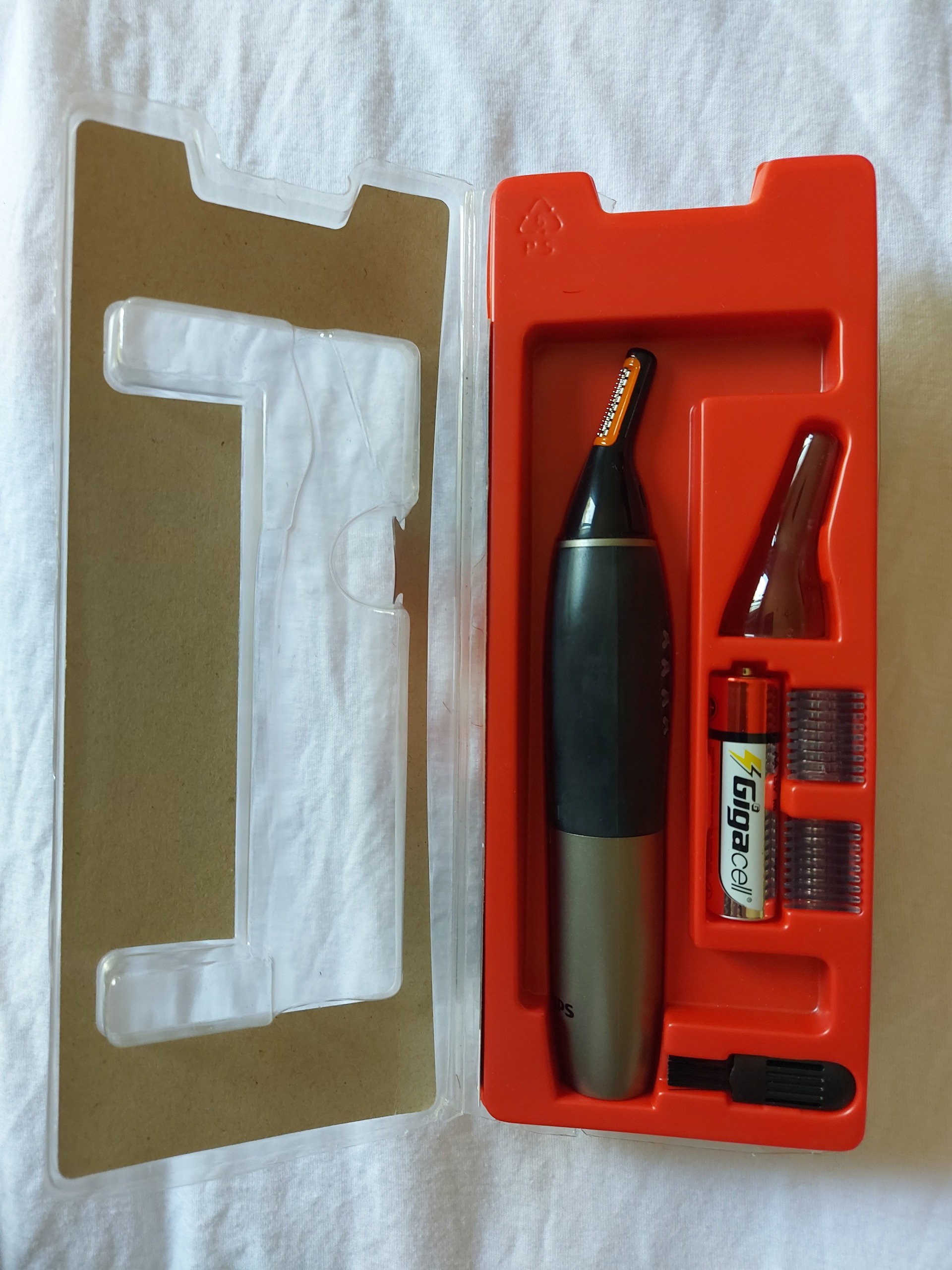 نونو و سالم - فیلیپس اصل - با یک باتری قلمی روشن میشود - هدیه تولد بوده است و اصلا استفاده نشده - شانه ، درپوش ، فرچه نظافت ،2 تنظیم کننده ابرو دارد - ضد آب - برند هلندی ساخت در چین