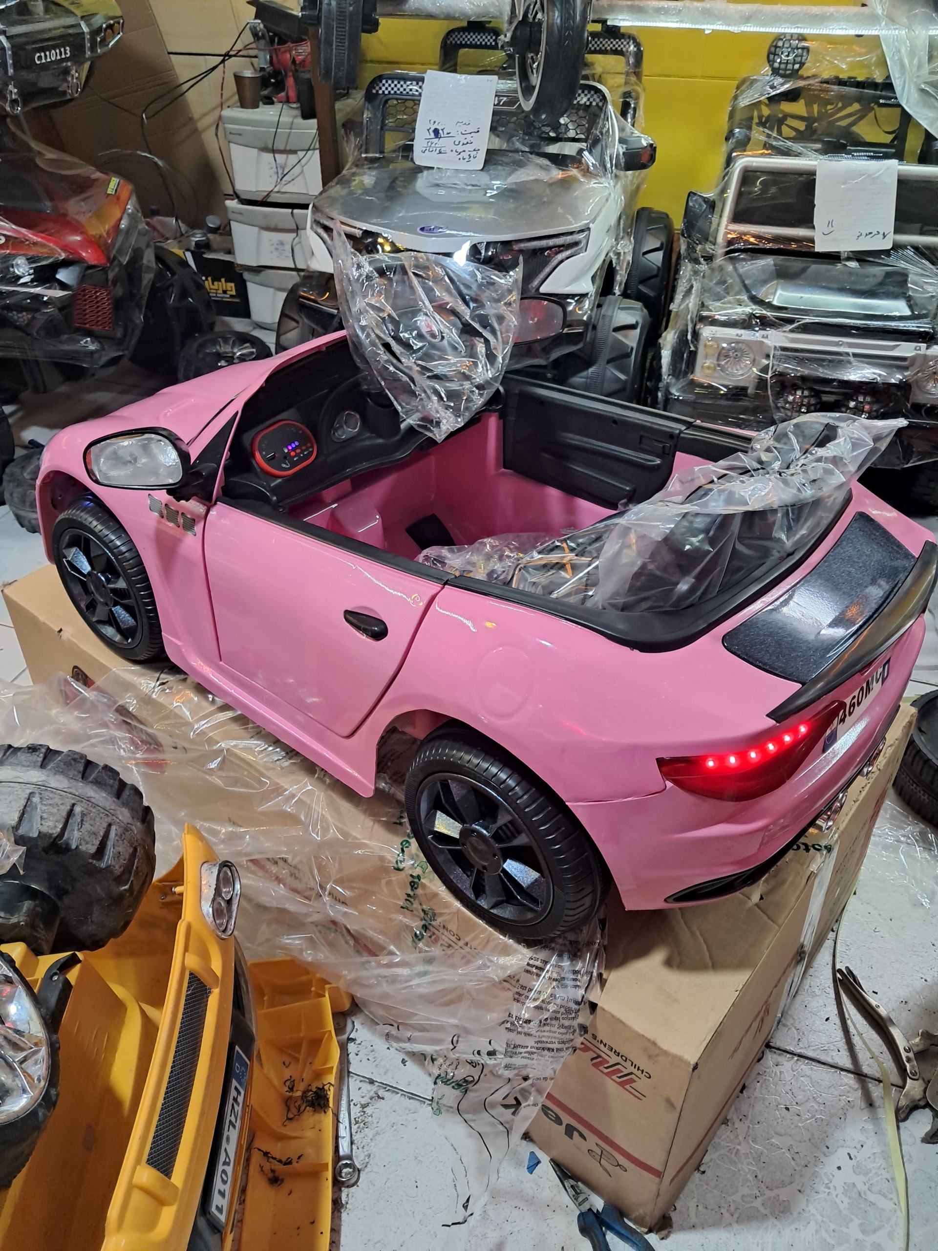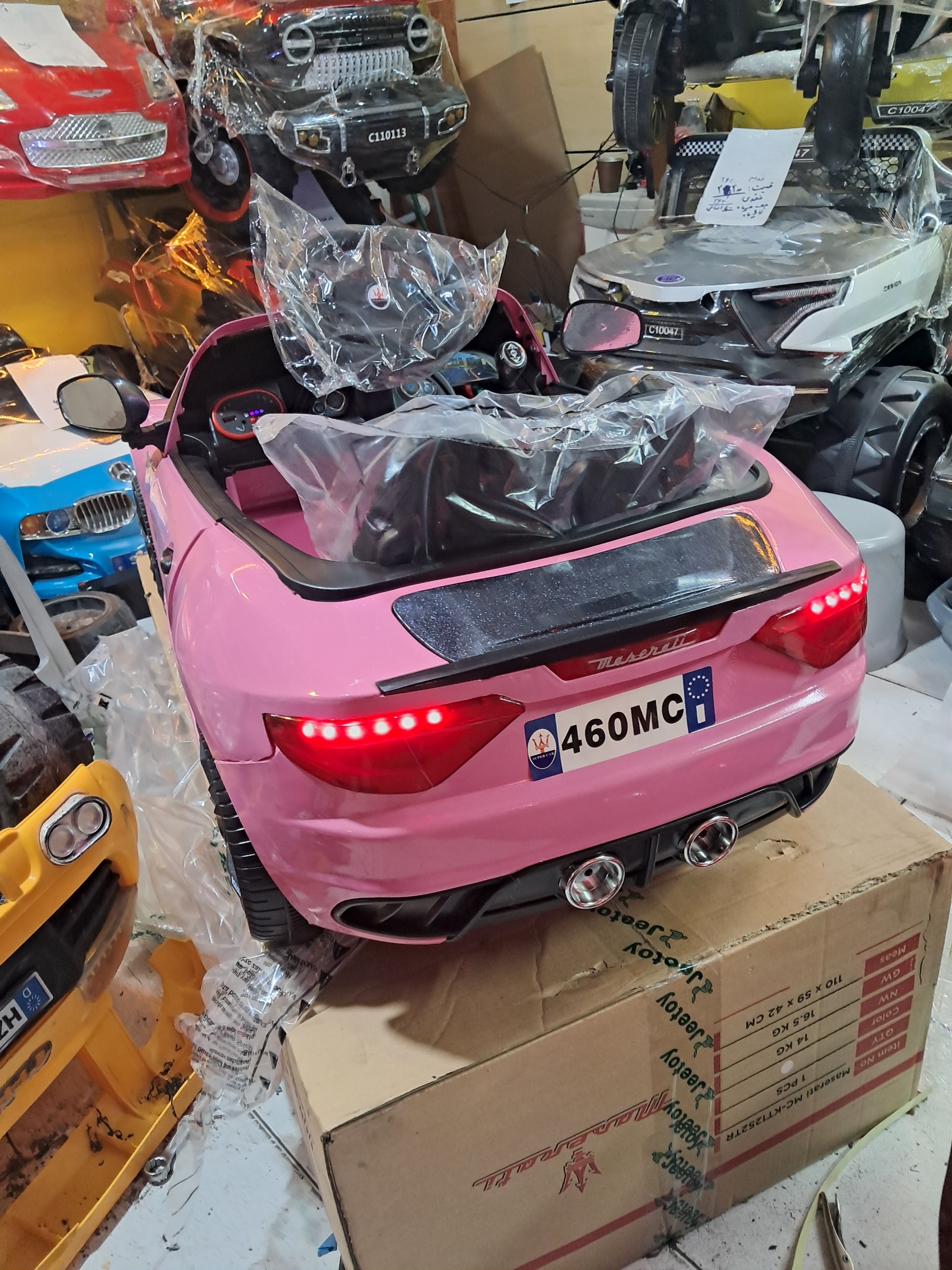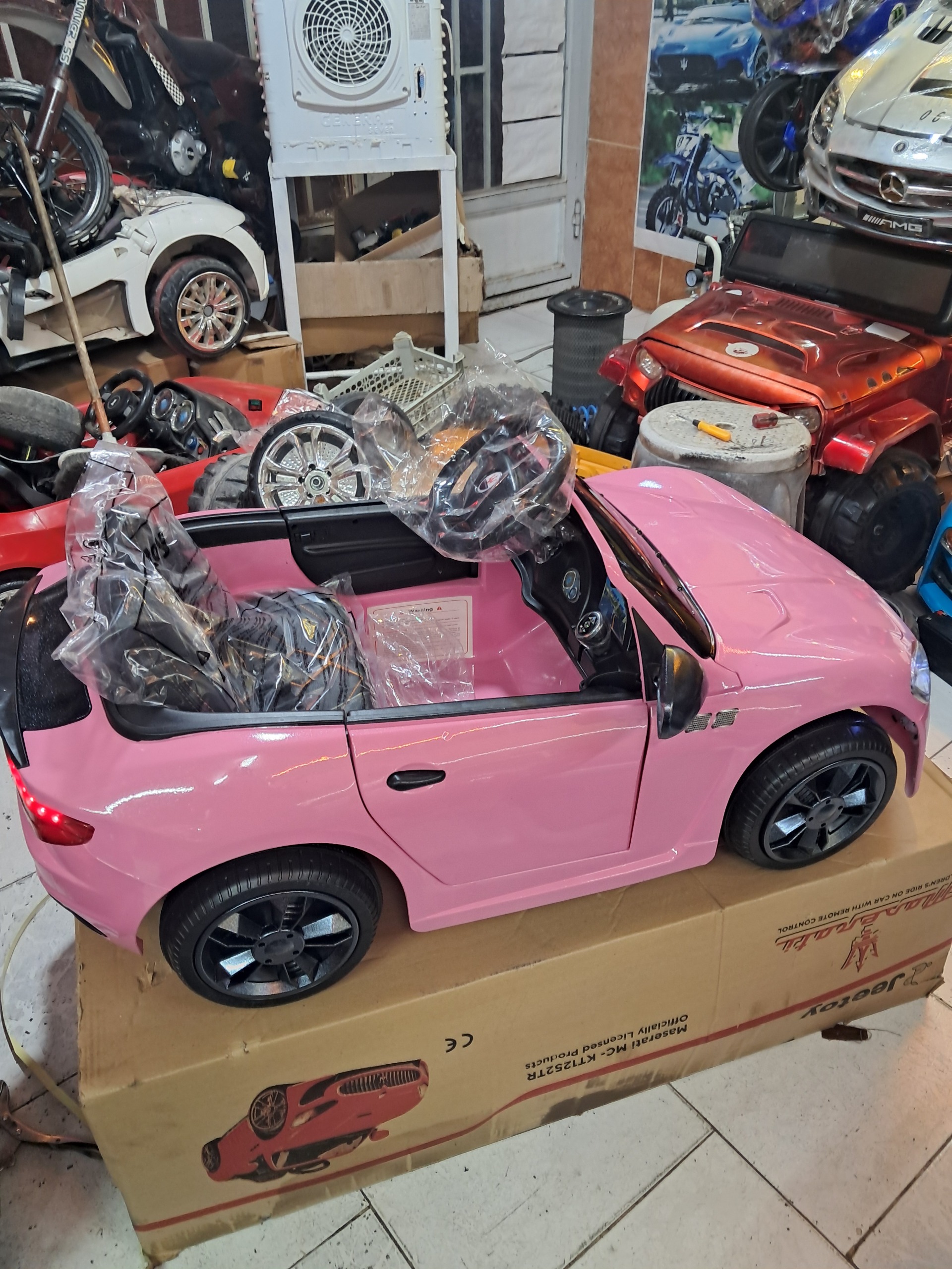 ماشین شارژی صورتی مازراتی مناسب تا 8سال تحمل وزن 55کیلو نو آکبند فلش خور و فول آپشن