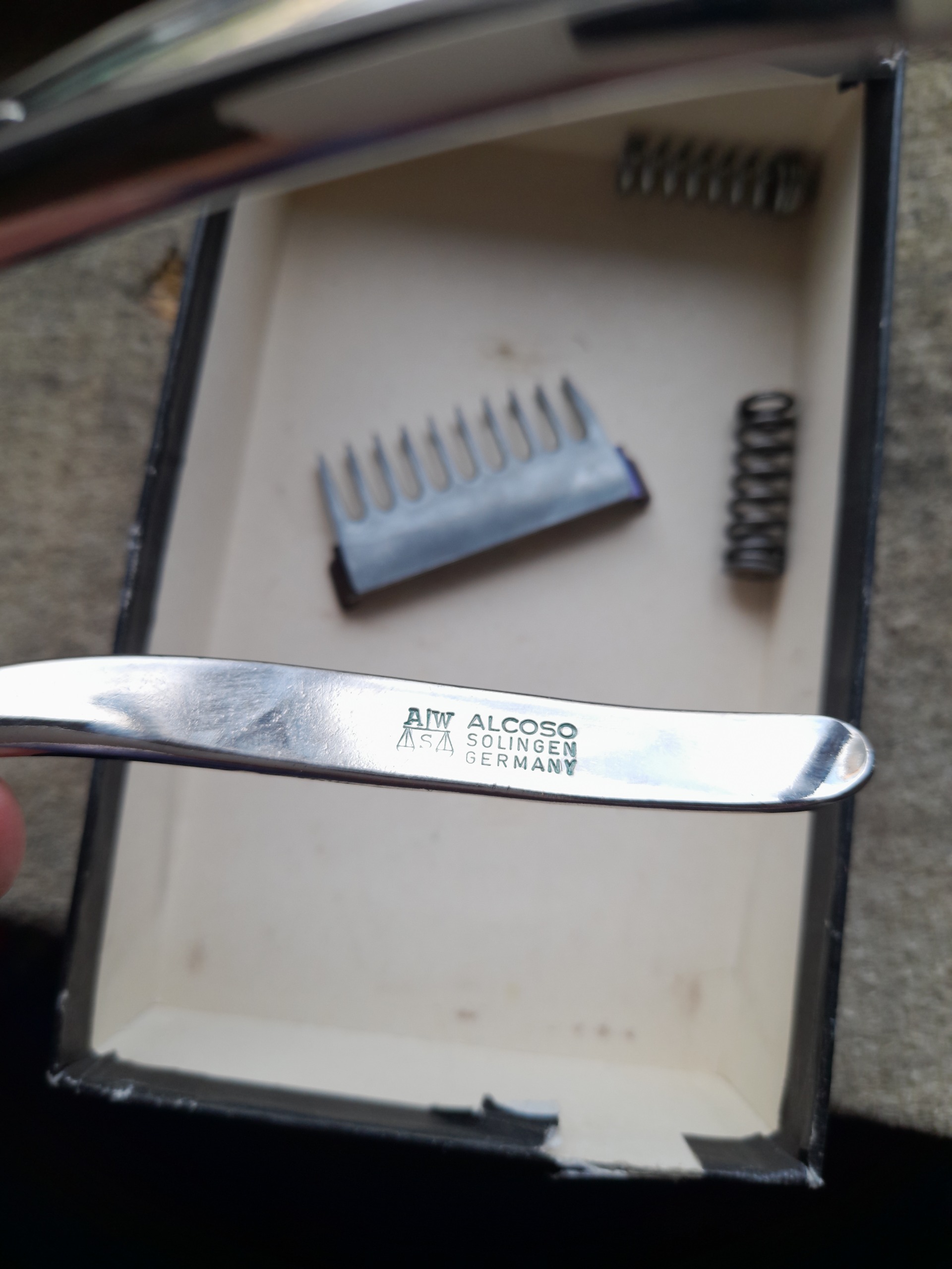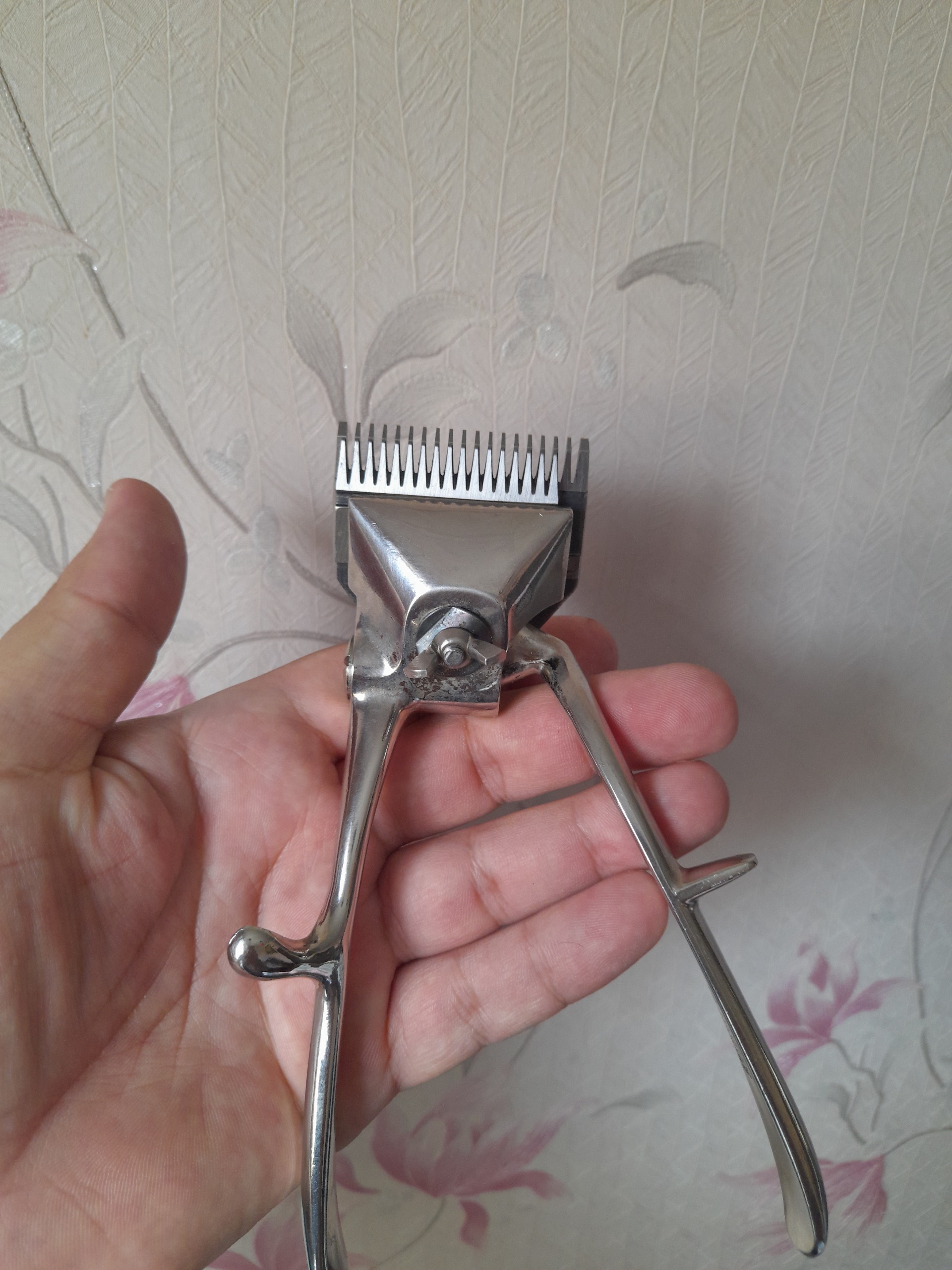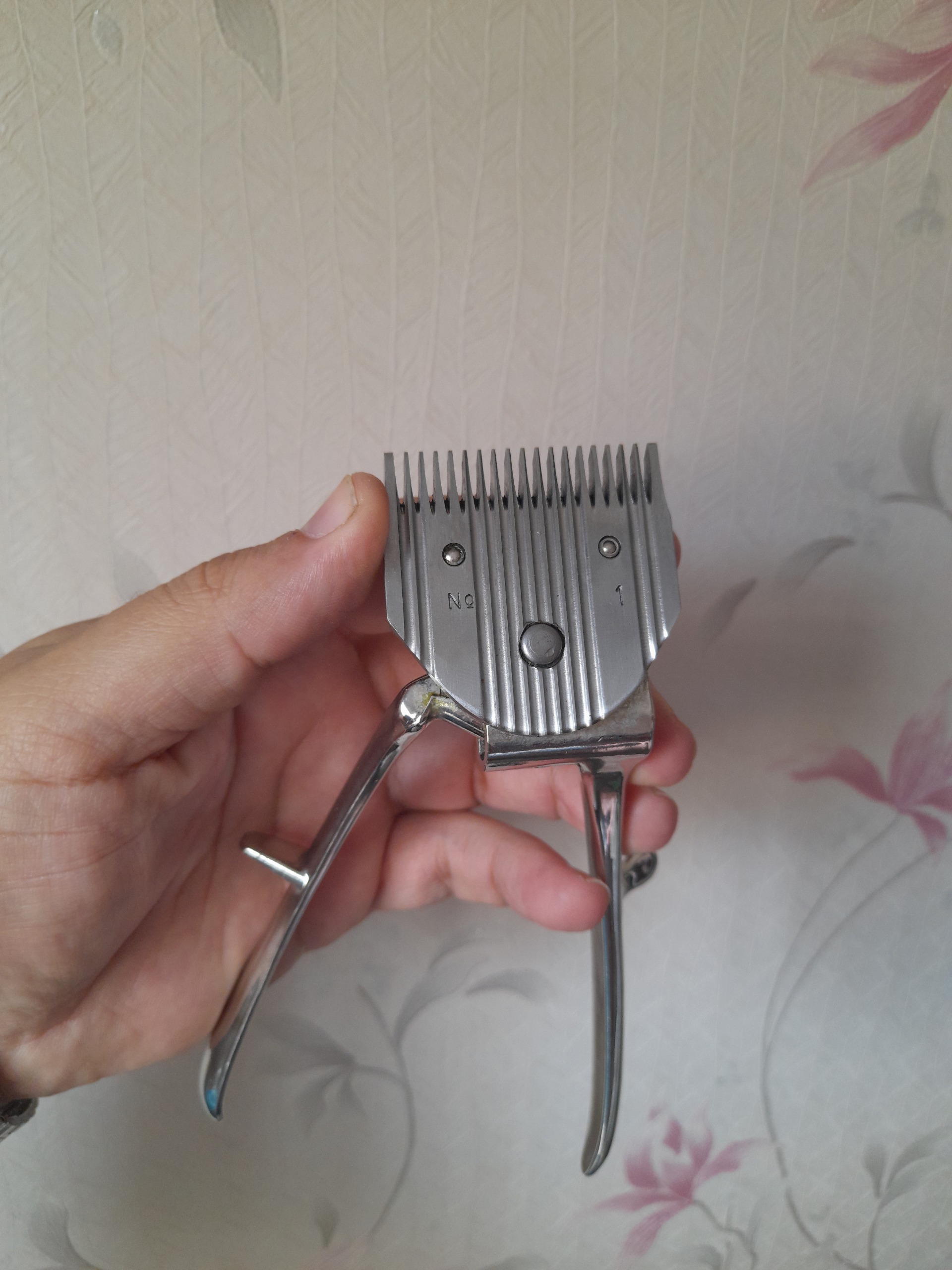 ماشین ریش تراش دستی قدیمی آلمانی همراه با کارتن و شانه و فنر یدک اصلیش حتی پلاستیک فابریکش هم موجوده خیلی کم کار کرده و سالم هستش