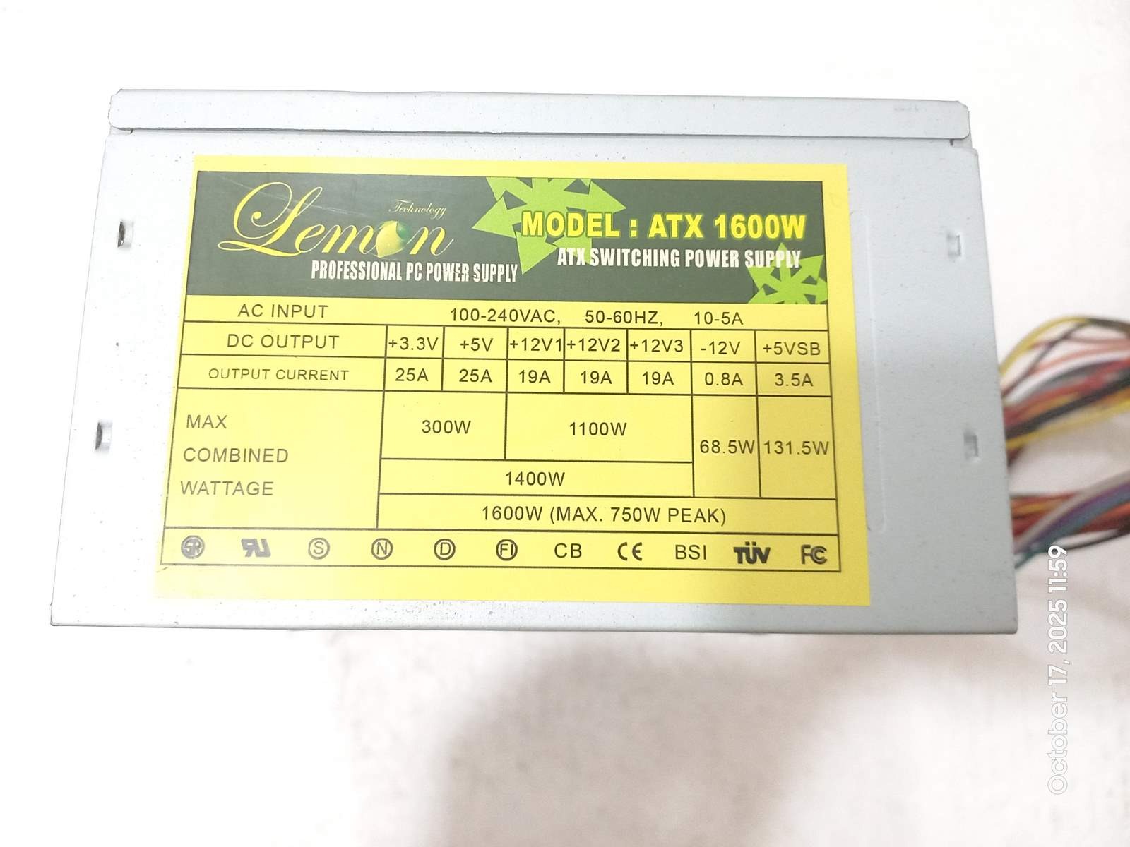 پاور Lemon ATX1600W پاوری فن بزرگ و 24 پین میباشد که دارای 3 کانکتور ساتا و 2 رابط IDE میباشد.