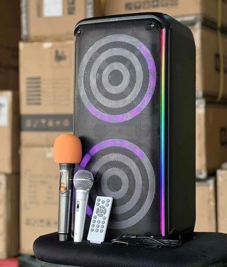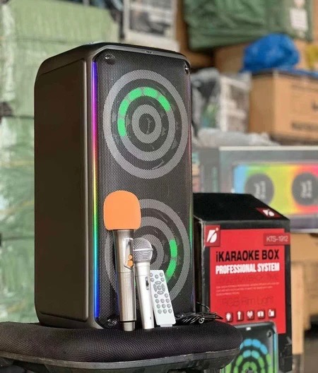 اسپیکر سایز بزرگ شارژی مدلkts 1912 دارای دوساب 8 اینچ و یک تیوتر هورن قابلیت:رم،فلش،بلوتوث،رادیو،نمایشگر،aux رقص نور حالت های مختلف دوتا میکروفون بیسیم و سیمی ثانویه اکو امپیلی اکولایزر تنظیم صدا و بیس مدل چرخ دار و قابل حمل اقلام همراه:میکروفون بیسیم ریموت کنترل کابل شارژ