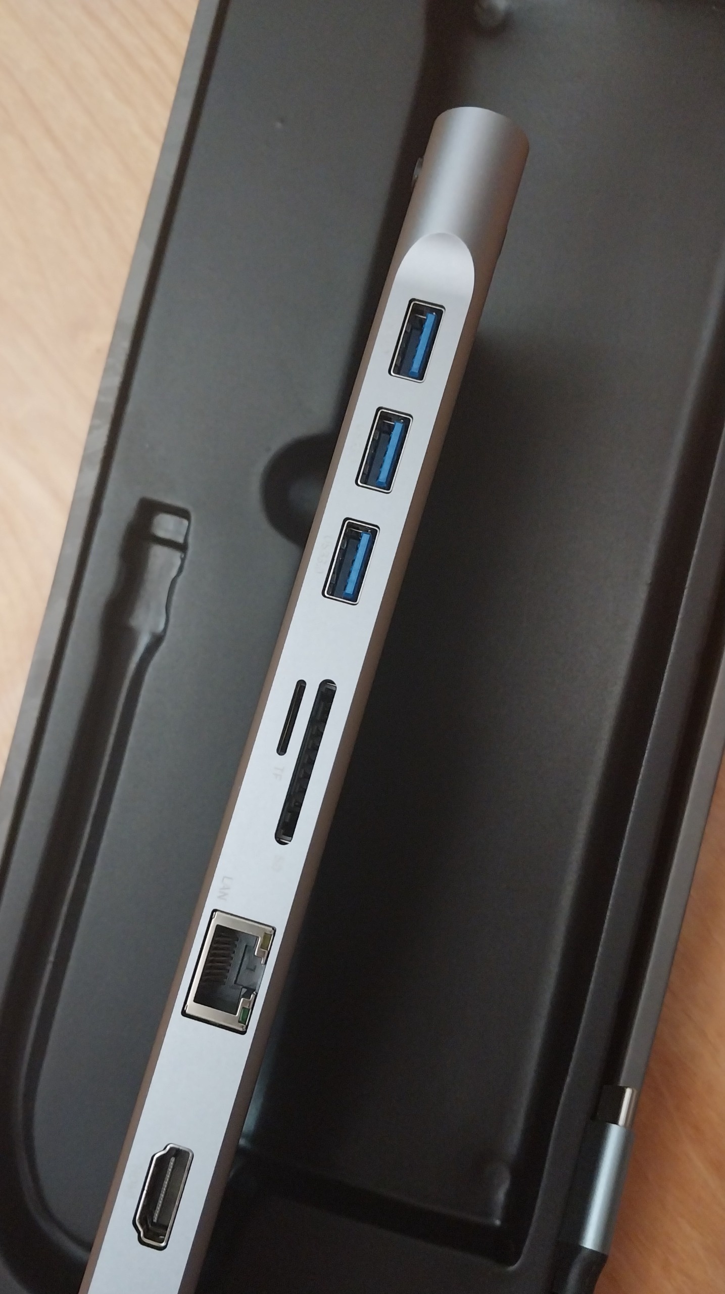این هاب 10 پورت سه چهار بار بیشتر استفاده نشده. کاملا سالم هست فقط قسمتی که لپ تاپ قرار میگیره در حد بسیار کمی گوشه اش ساییده شده که تو عکس کامل مشخص هستش.