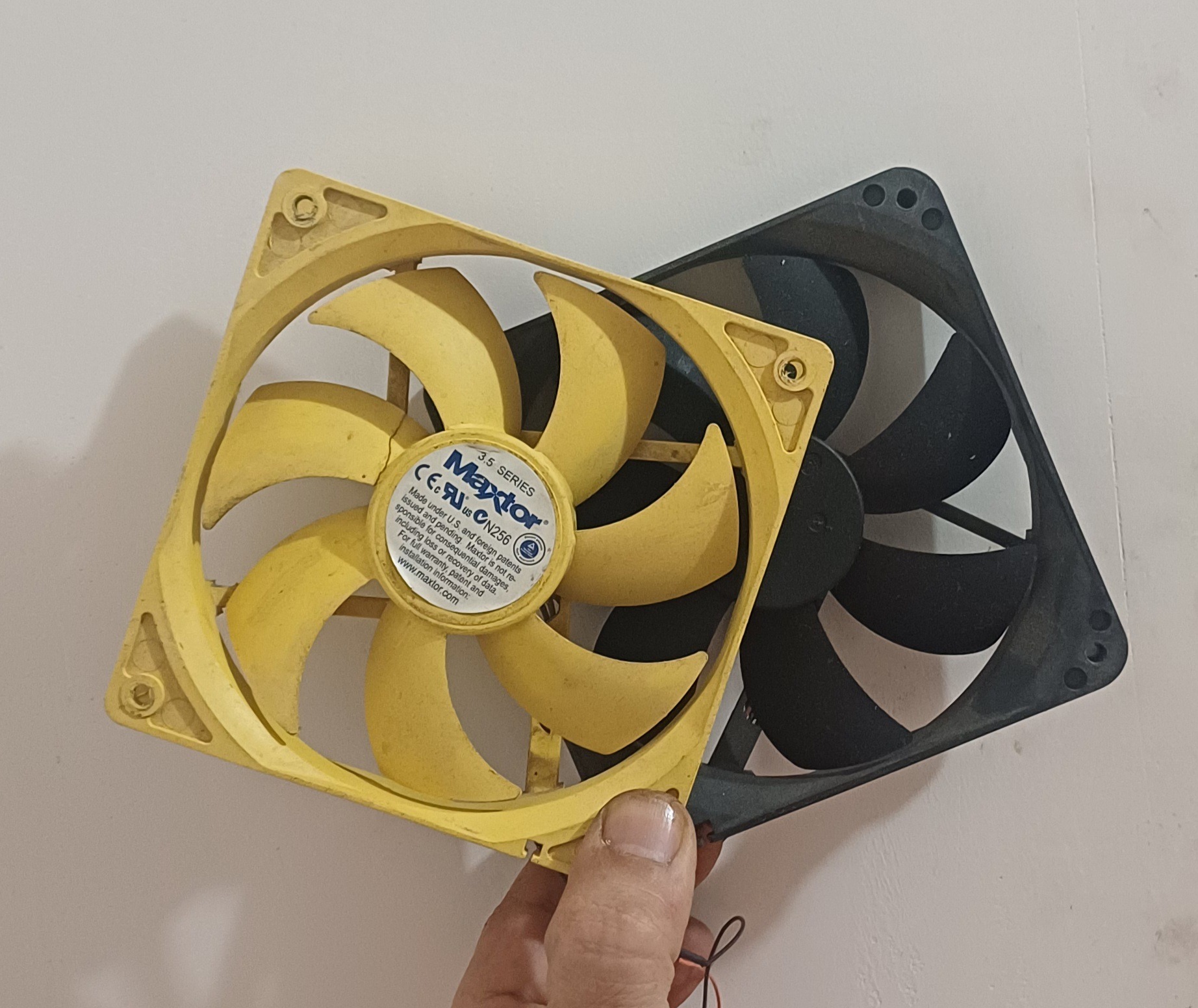 فن زرد رنگ یکی از پره هاش شکستگی داره ک تو تصویر دوم مشخص هستش چسب زدم و محکم شده