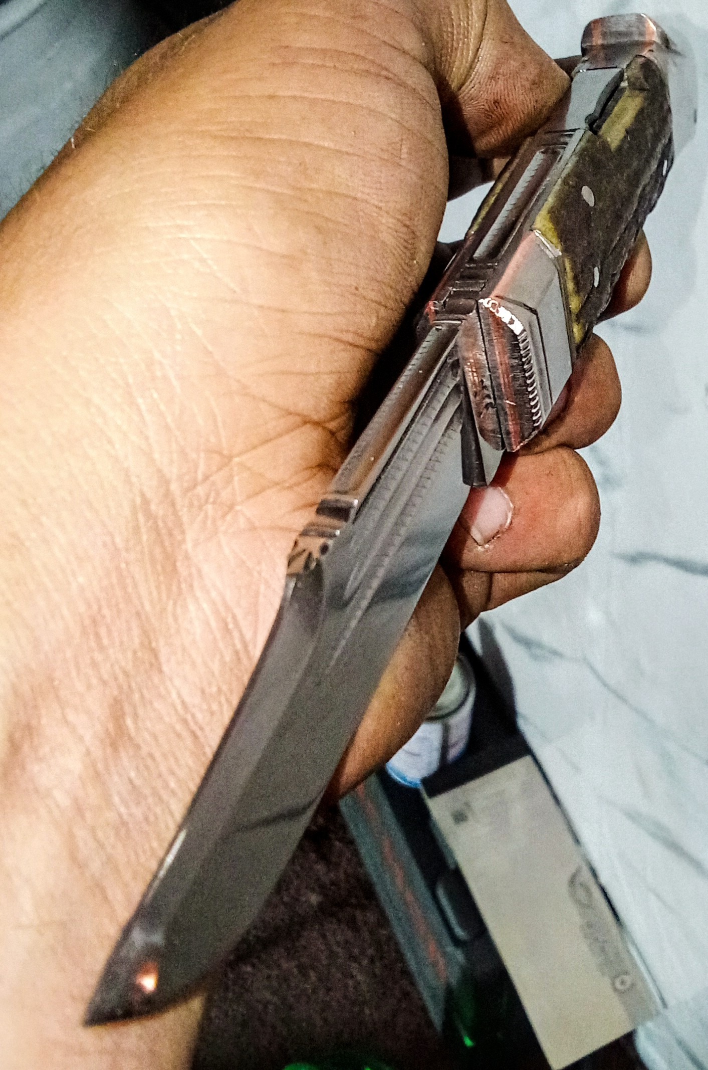 چاقوضامندار کلکسیونی دسته گوزن گوشتدار کلفت وضخیم تیغه فنر مدل زره پاره کن سایز24سانت بدون در کیپ فنر قوی وپرناب تیغه شلاقی وضامن محکم وروان وتیغع بادامی همین سایزهم موجود میباشد وسایز کوچکتر وبزرکترتا40سانتموجود میباشد و کلیه سفارشات چاقو کلکسیونی وسفارشی وقدیمی پذیرفته میشود