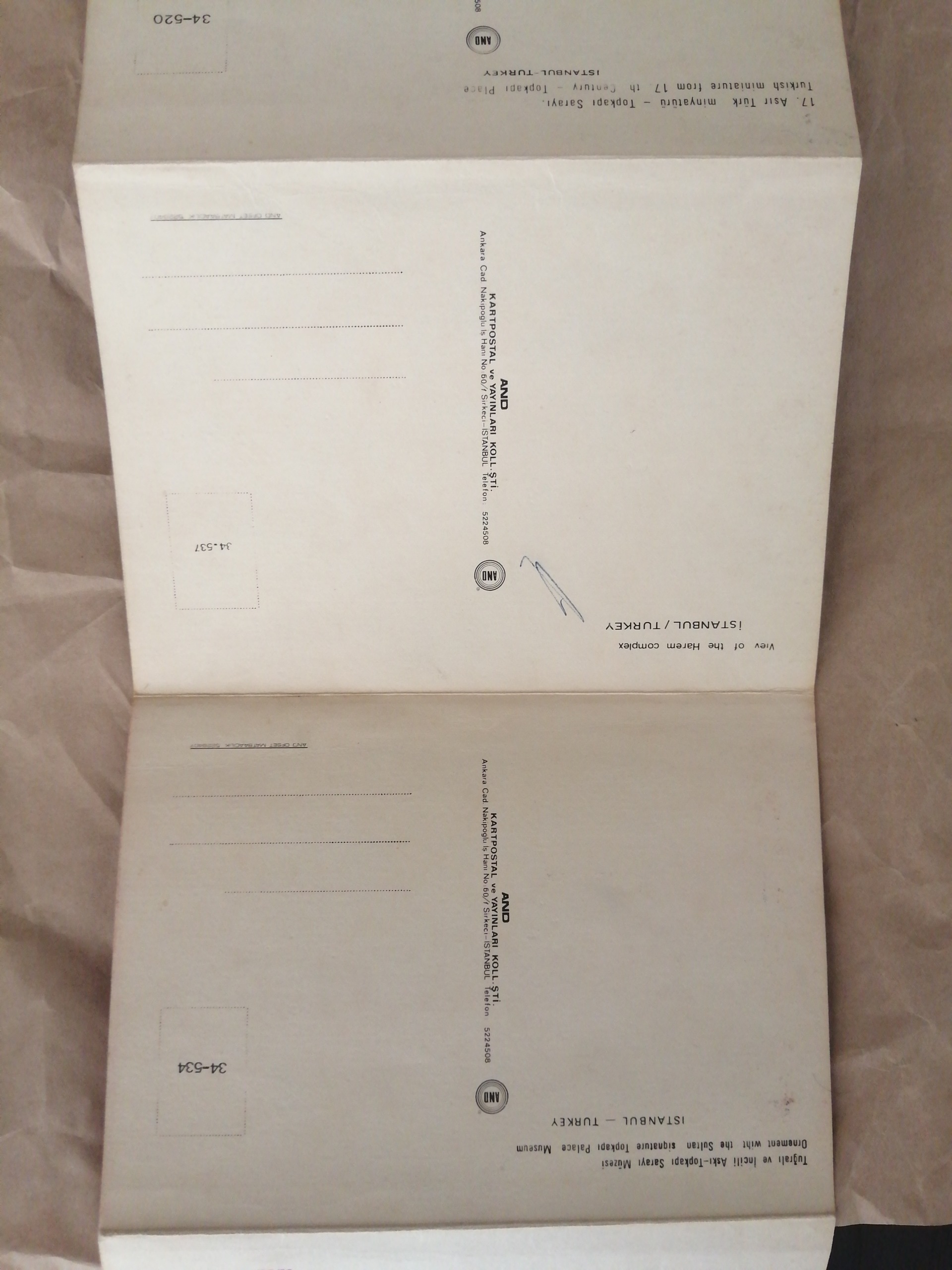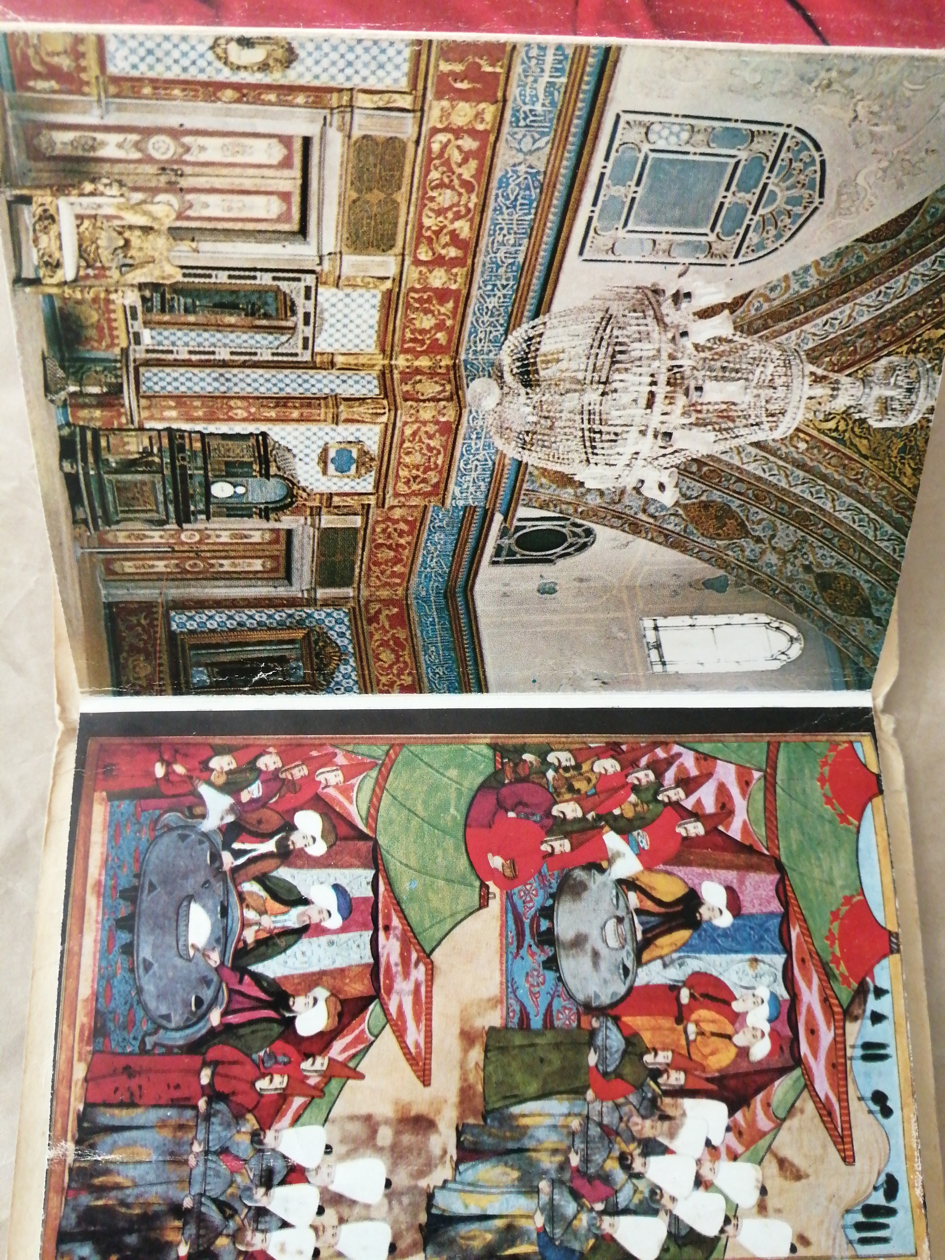 12 قطعه کارت پستال به هم پیوسته با تصاویر اشیا نفیس و جواهرنشان موجود در کاخ توپکاپی استانبول است، چاپ استانبول ترکیه آنادولو
