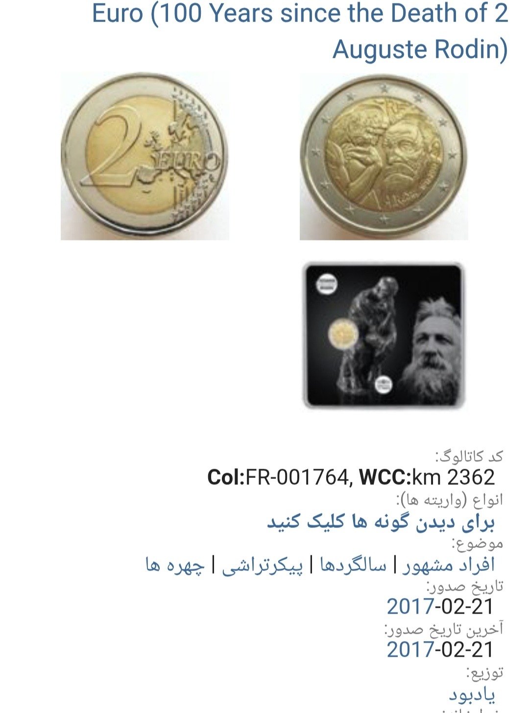 سکه 2یورو یادبودی نایاب فرانسه2017 (501))