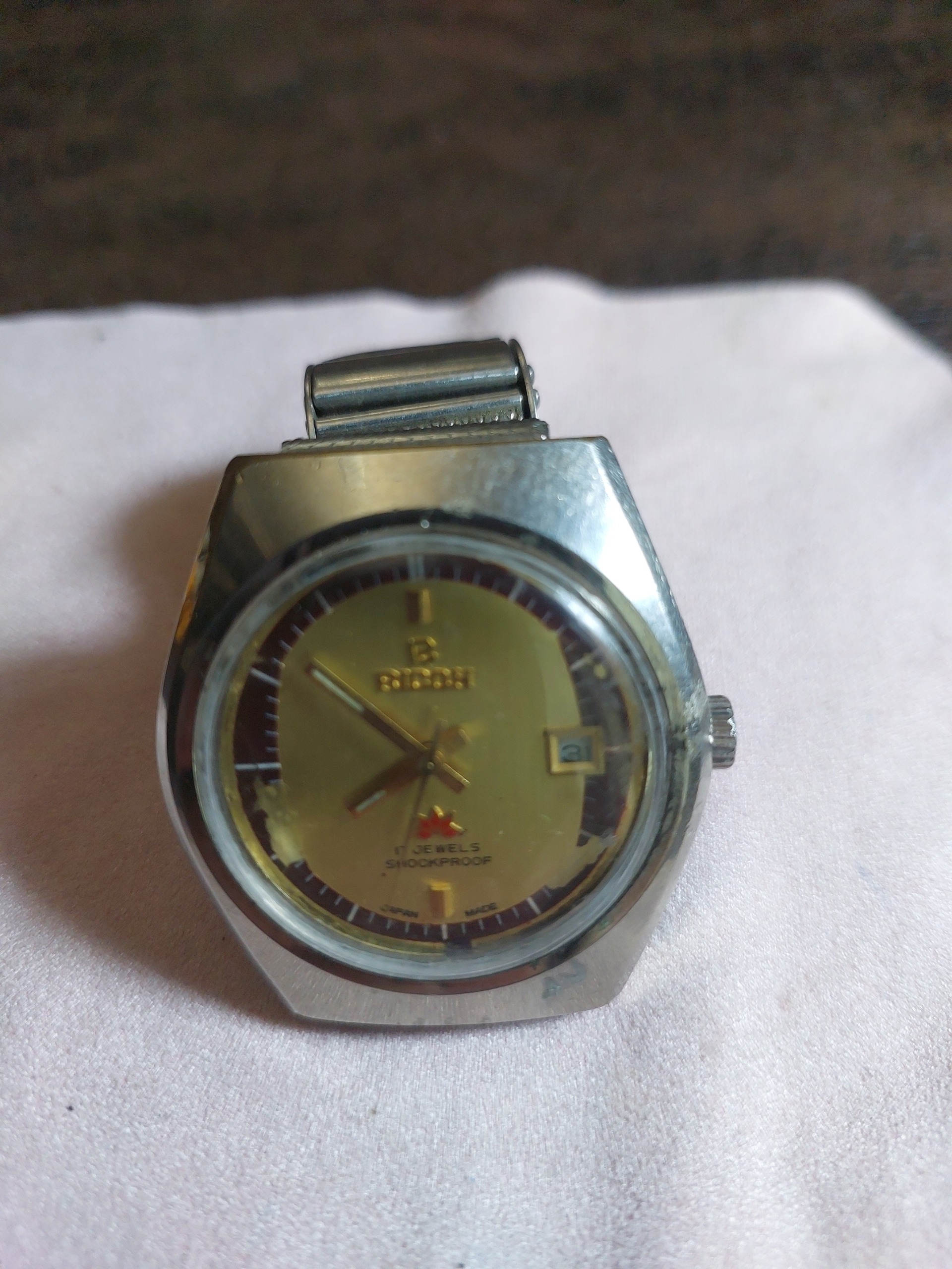 ساعت کوکی ریکو اصل ژاپنی موتور در حد صفره و کار نکرده بند حصیری مال 60 سال پیش و ساعت اصل اصله مرجوعی ندارم