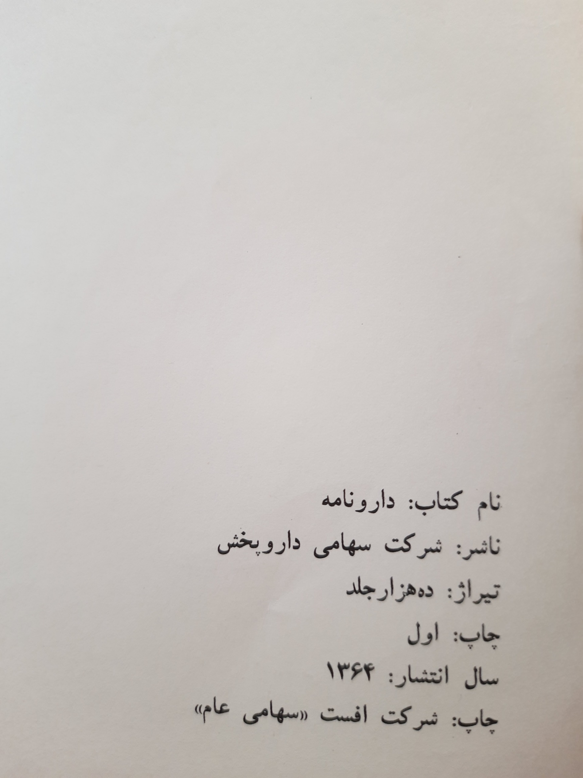 کتاب دارونامه چاپ شرکت سهامی داروبخش جابربن حیان سال 1364 معرفی انواع دارو پرکاربرد موارد مصرف مضرات نوع استفاده و ...