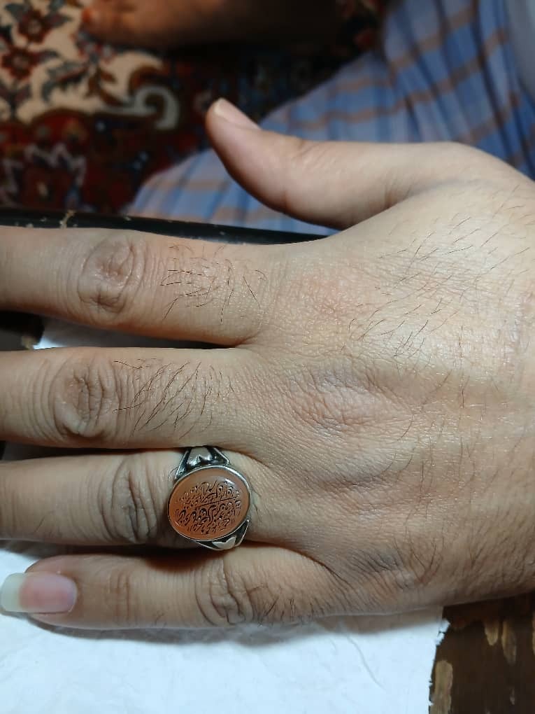 انگشتر عقیق خطی پشت بسته حرز دار بسیار کهنه آیه قرآنی نوشته هستش انگشتر خوش یوم و پر انرژی اصالت دار