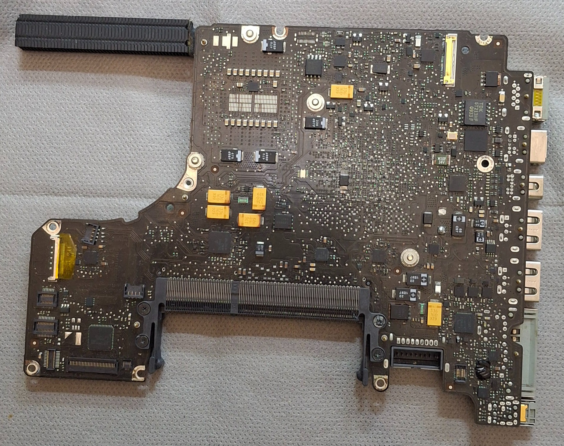 مادربرد لپ تاپ اپل A1278،یه مقدار اب خوردگی داشته قبلا برد خوب شسته و تمیز شده تعمیر کار کار بلد باشه درست شدنیه،بدلیل دست دوم بودن کالا امکان عودت نمیباشد،