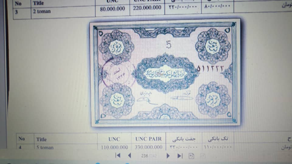 اسکناس 5 تومانی دموکرات اذربایجان،پیشه وری 90٪