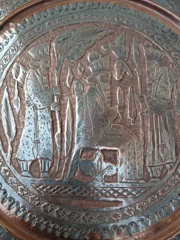 دیوارکوب سینی مسی قلم قدیم ،طرح هخامنشی ،زیبا، قطر سی و هشت سانتی متر ،وزن حدود یک کیلو ،بسیار زیبا ،شفاف،و منحصر بفرد ،اگر در خرید ابهام و تردید دارید از خرید خودداری نمایید  ،