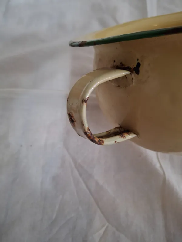 کاسه لعابی قدیمی درب دار مدل خاص دسته دارد هست ،کار خوبیه و تک
