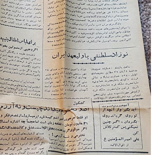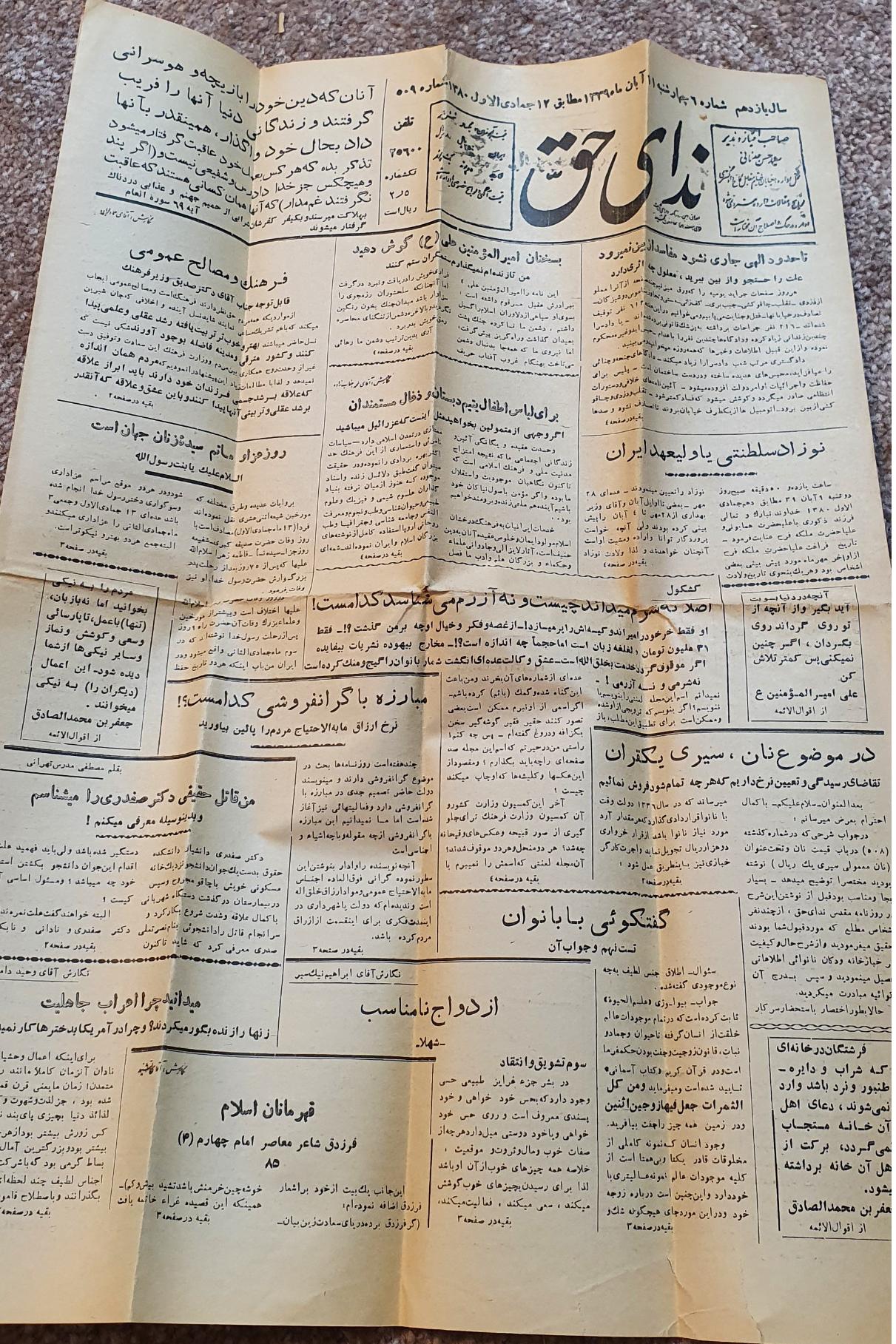 روزنامه زمان شاه ندای حق 11 آبان ماه 1339