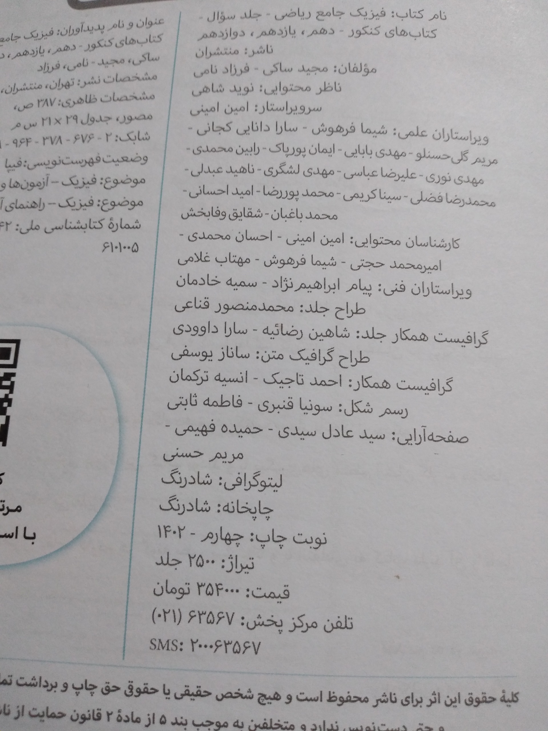فیزیک جامع ریاضی ،جلد سوال 1402 ده،یازده، دوازدهم