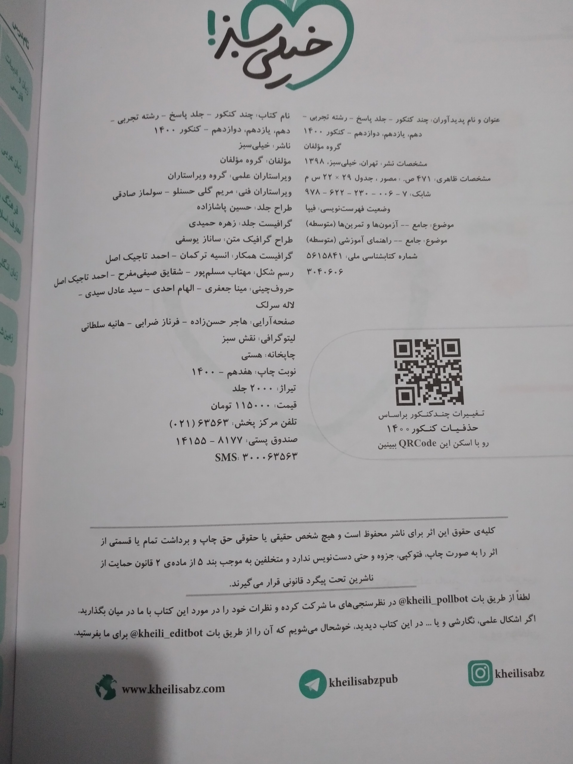 چند کنکور 1400 جلد پاسخ رشته تجربی