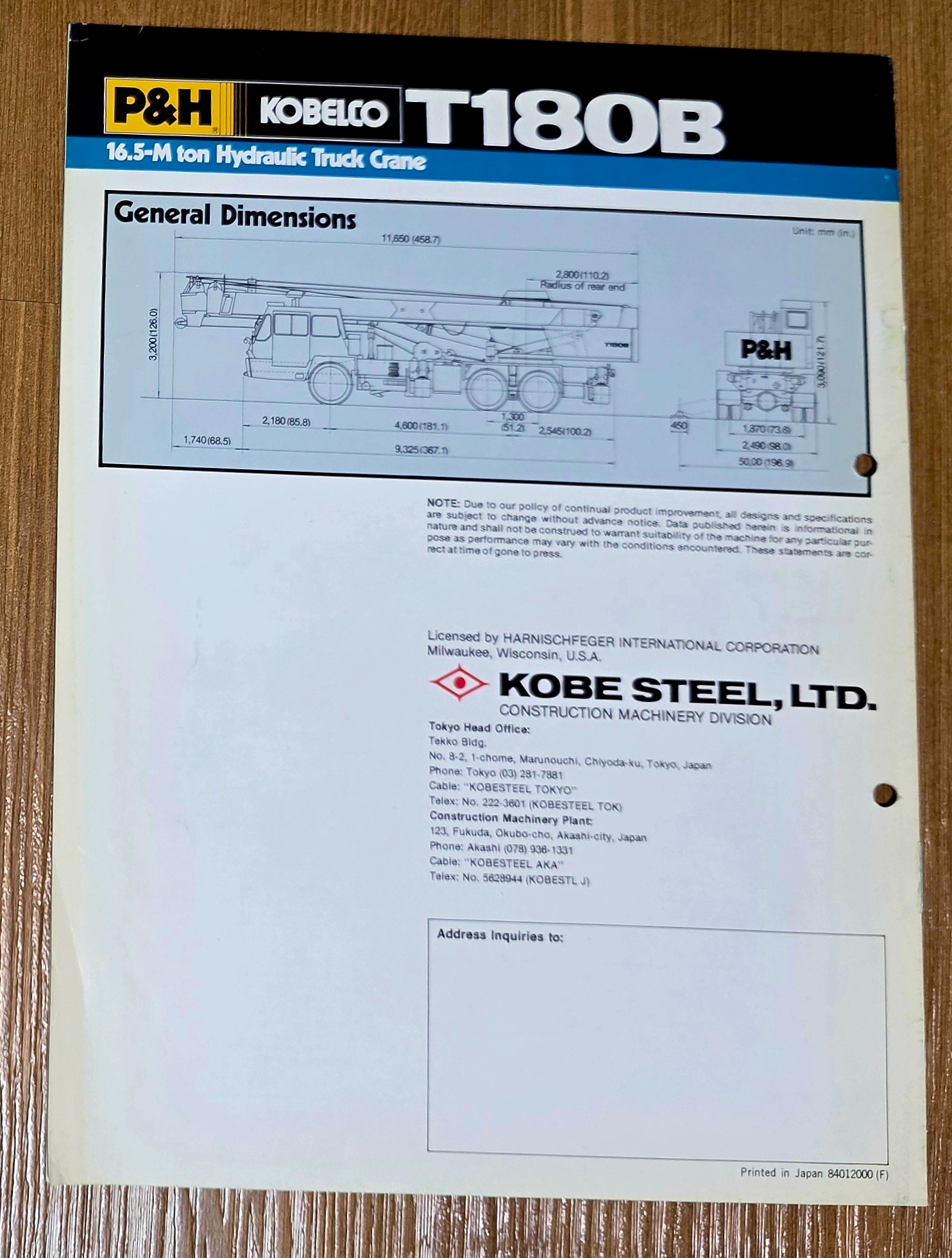 کاتالوگ جرثقیل KOBELCO _ مدل T180B