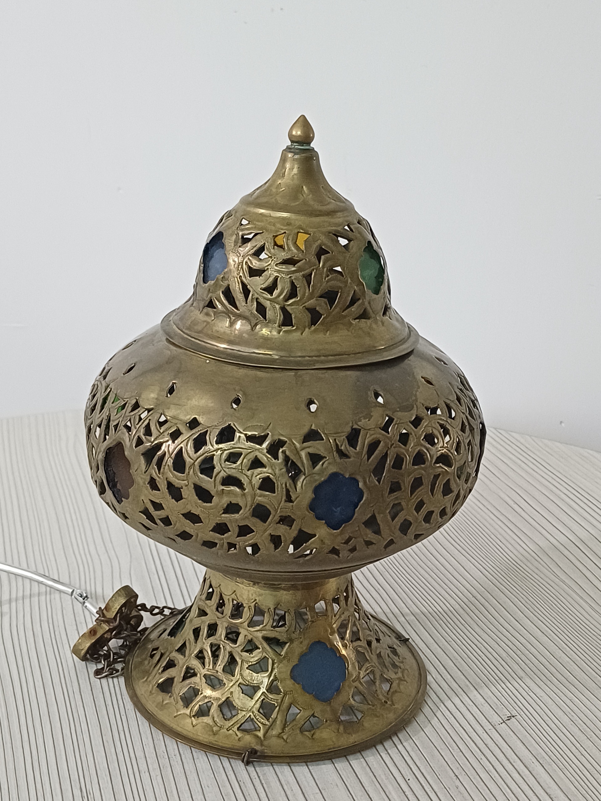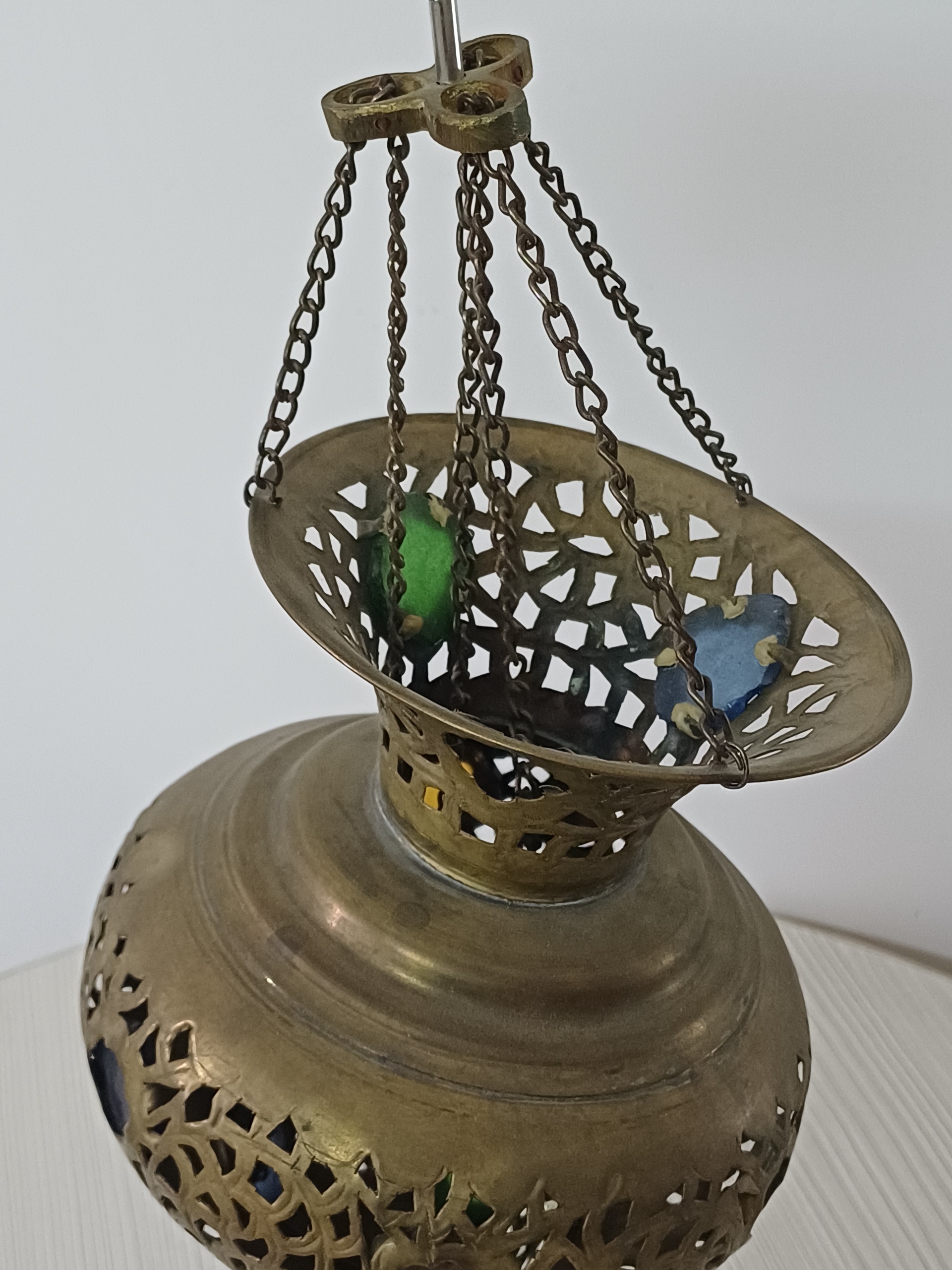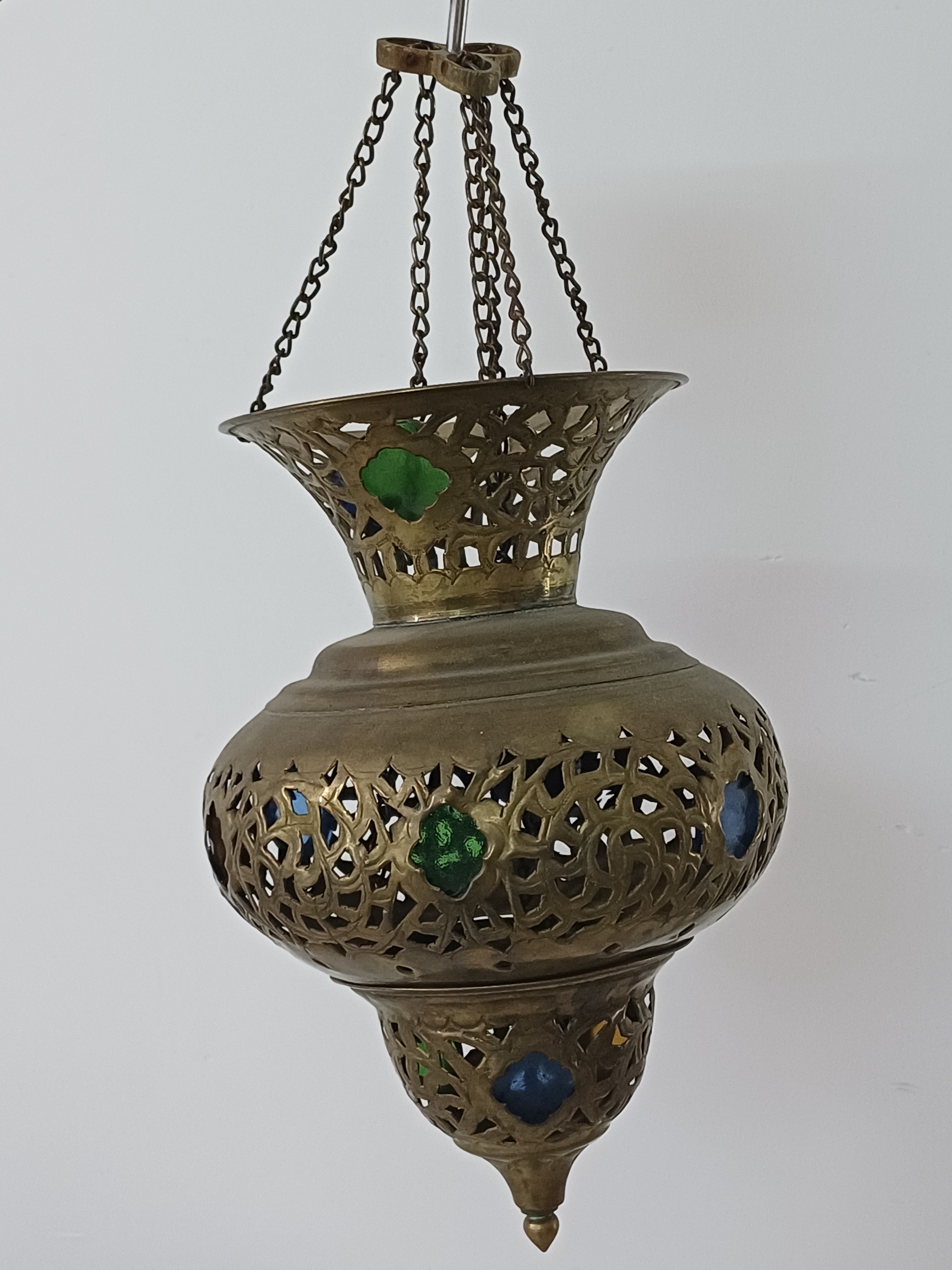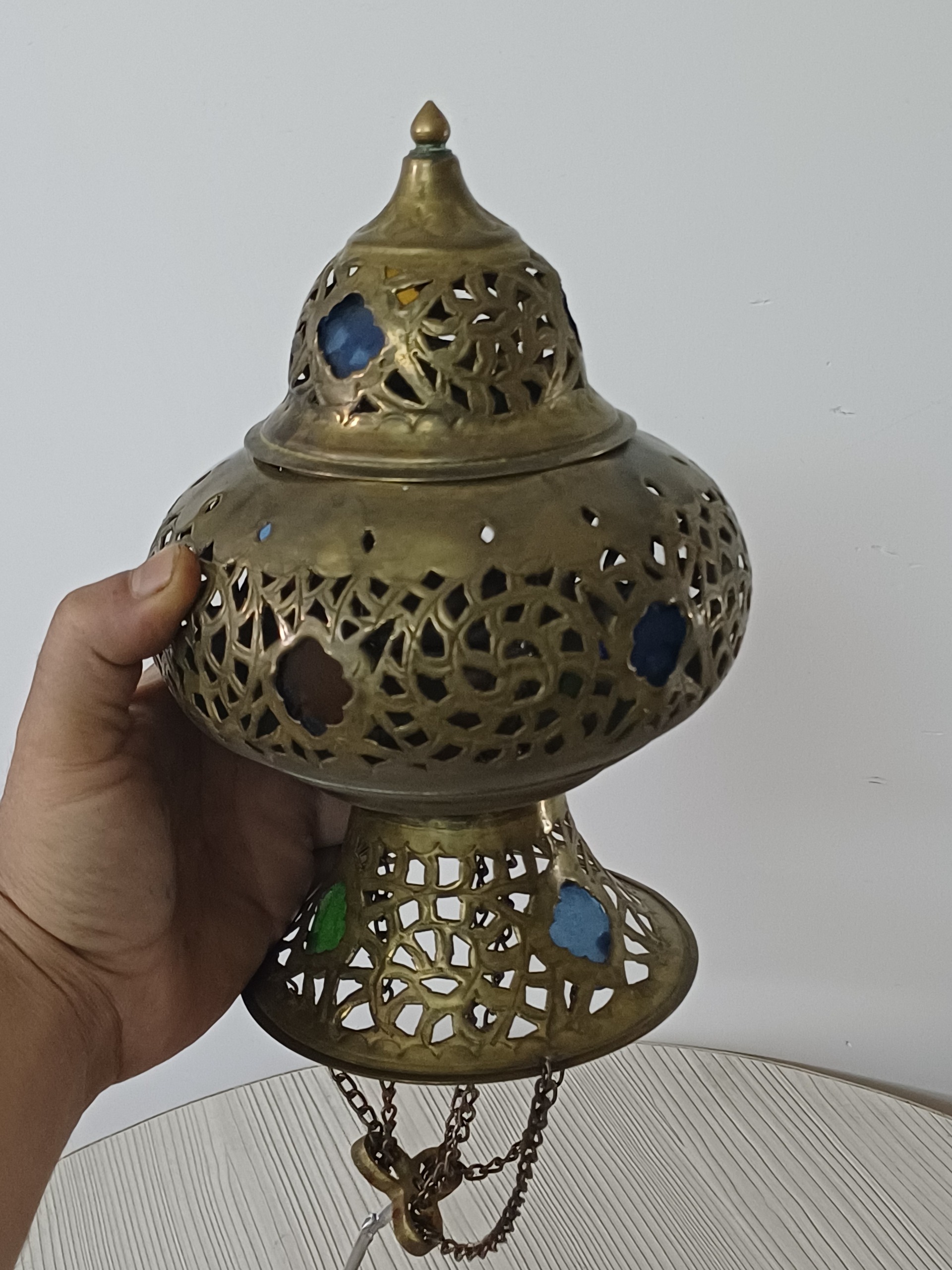 لنتر برنجی قاجاری کهنه تمام مشبک