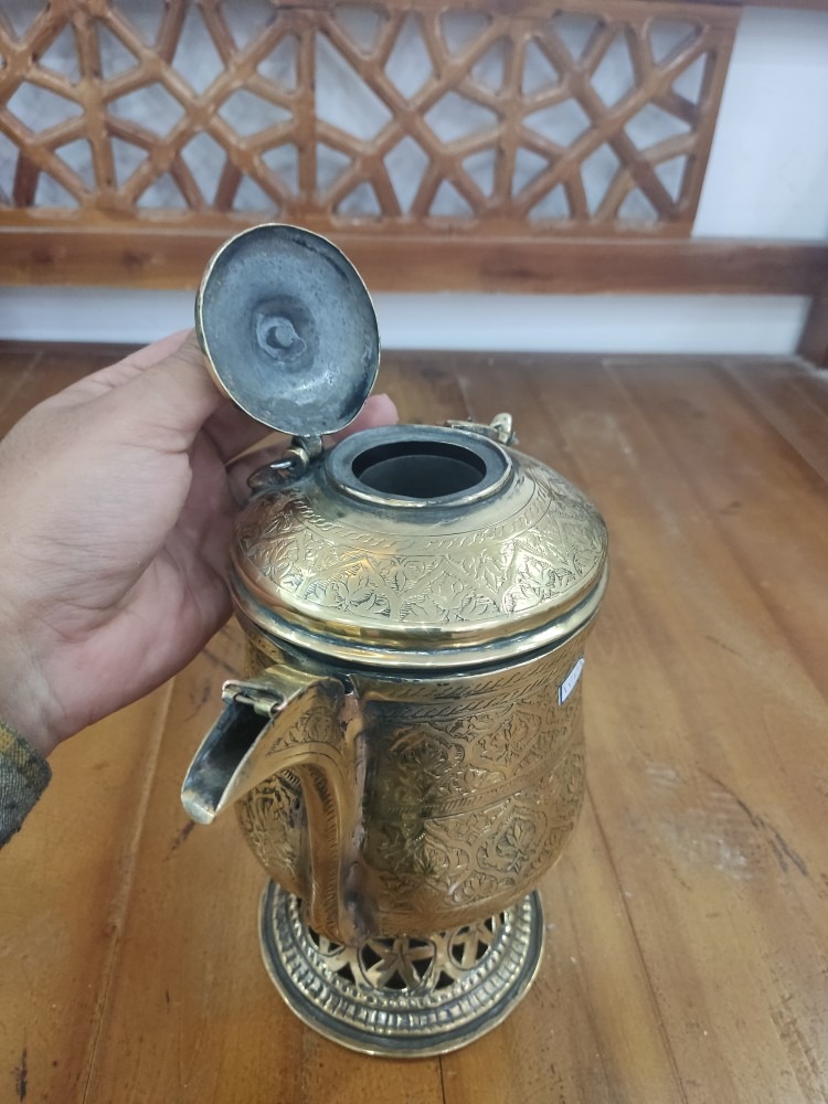 سماور یا کتری صحرایی برنجی تمام قلم دست و دست ساز خاص و کمیاب و کلکسیونی سالم بدون تو رفتگی مطابق عکس