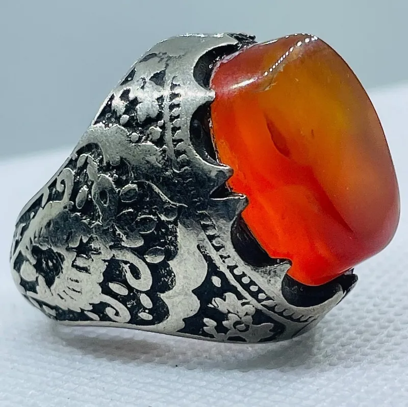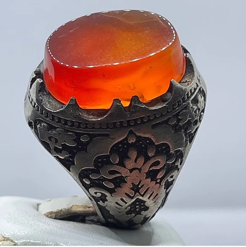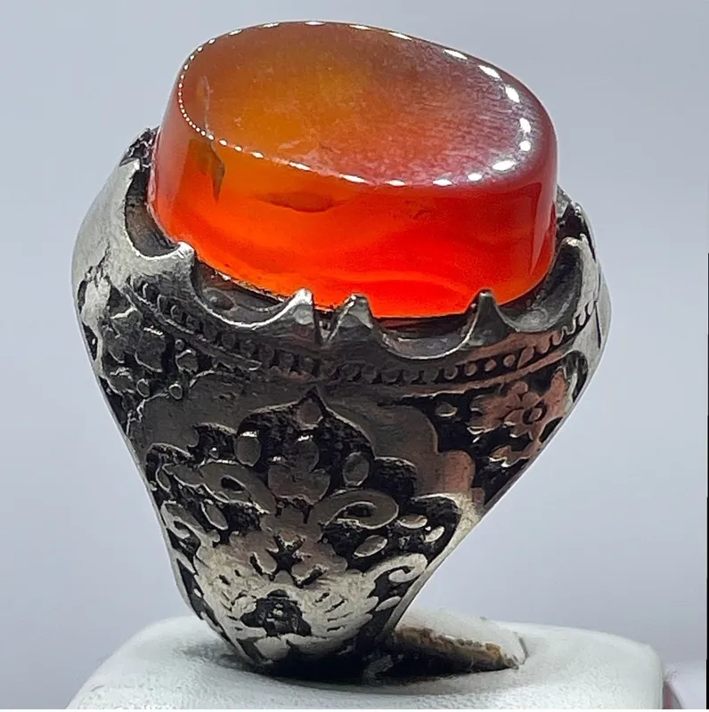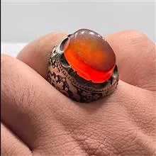انگشتر فدیومی عقیق یمنی لامپی اشرافی سرخ پرتغالی