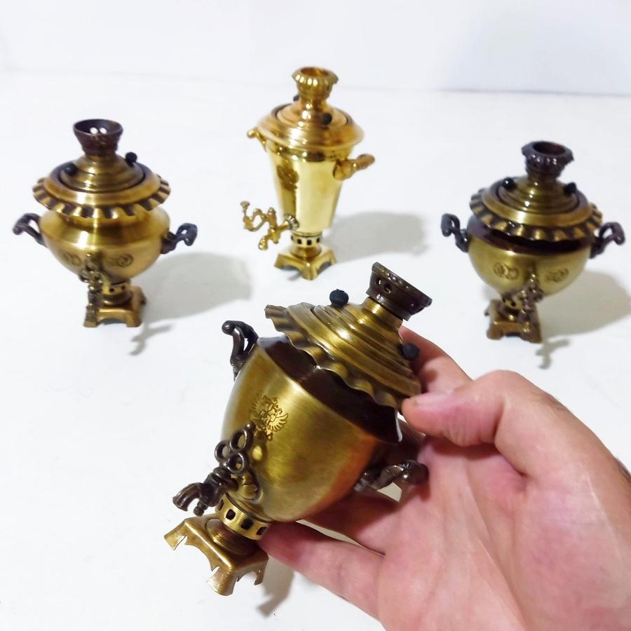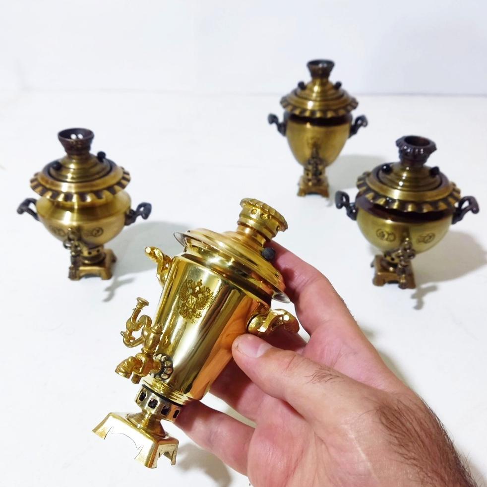سماور تمام برنجی کوچک تزیینی مدل نیکلای روسی مارکدار با ارتفاع 13 و 12 سانتمتر و با کیفیت و قابل شستشو بدون تغییر رنگ