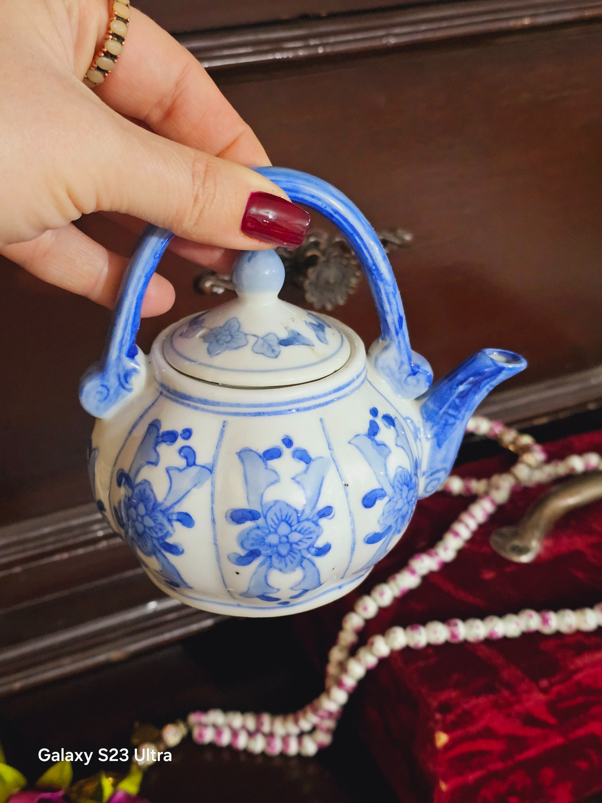 قوری قلم آبی قدیمی خیلی زیباست سایز کوچک کمیاب