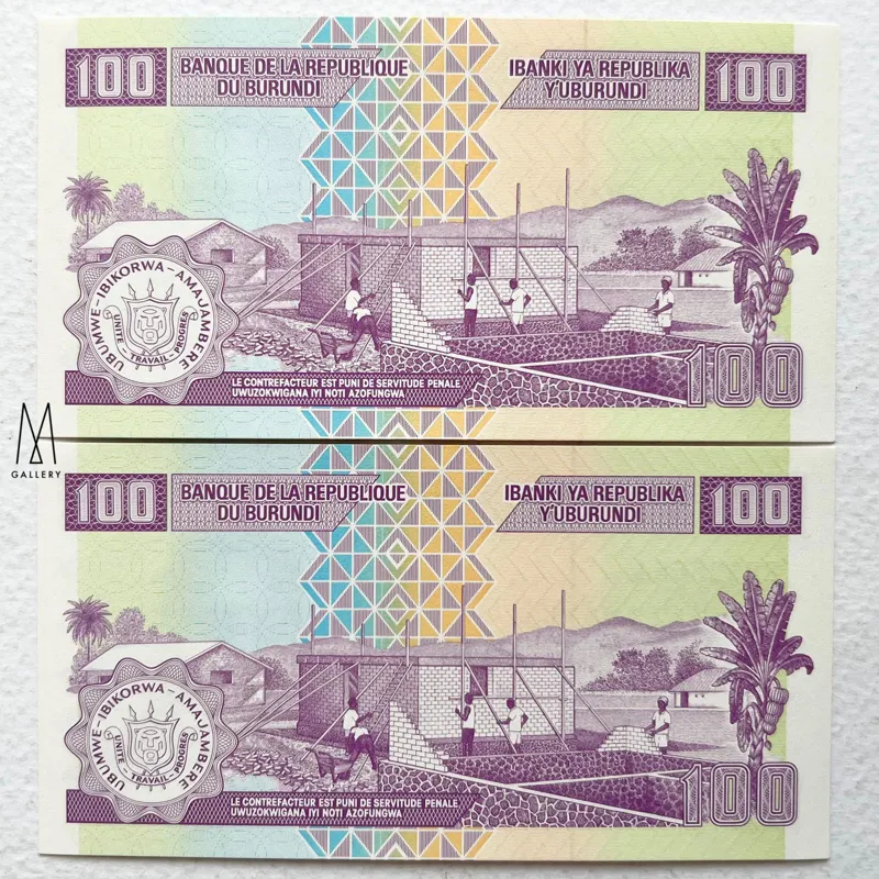 جفت اسکناس خارجی 100 فرانک بوروندی 2011 (بانکی)