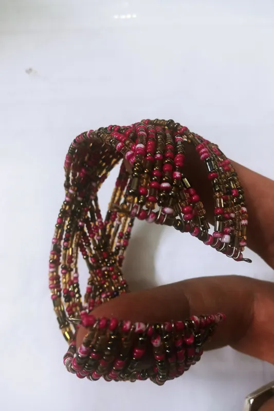 دستیند بدلیجات حالت فنری با دانه های ریز بدلیجات چند رنگ درست شده.