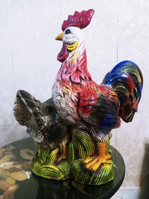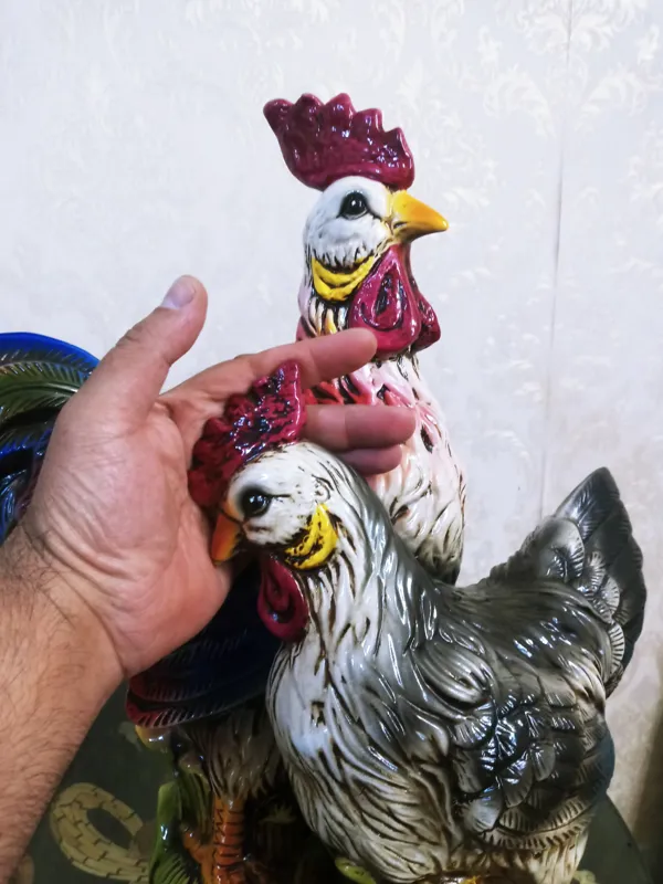 مجسمه چینی رو میزی مرغ و خروس بهم چسبیده به ارتفاع47 سانت و عرض 42 سانت .کاملا نو و سالم.