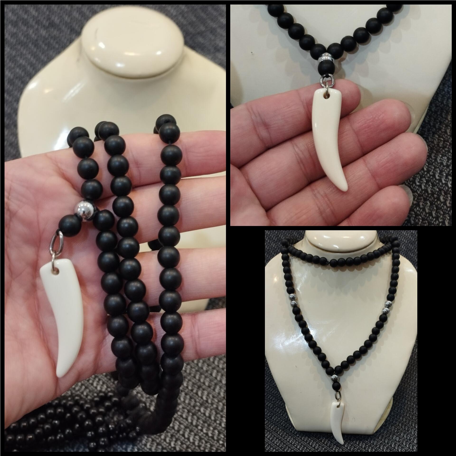 گردنبند مهره سنگی طرح عاج فیل صنعتی
