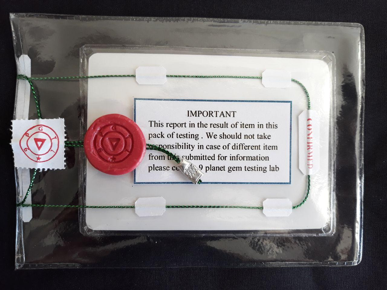 ( سنگ جواهری دو بار جهت بررسی به کمپانی ارسال شده است و با تاییدیه و پلمپ تخصصی مجدد با امنیتی ترین پک پلمپ صورت گرفته است )