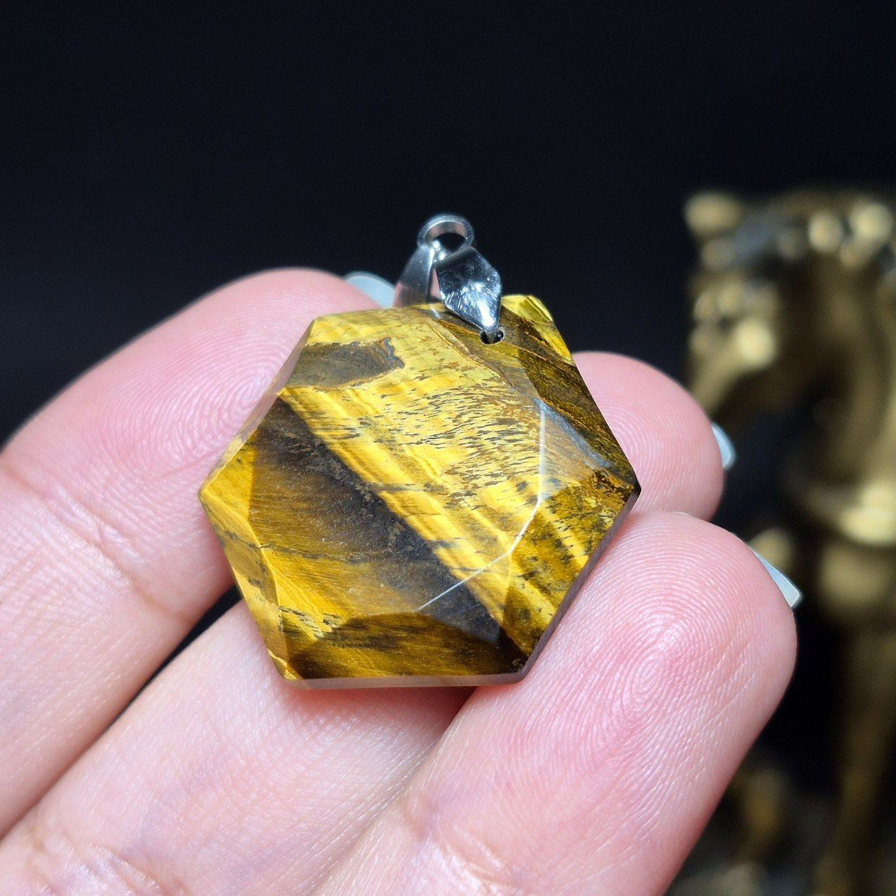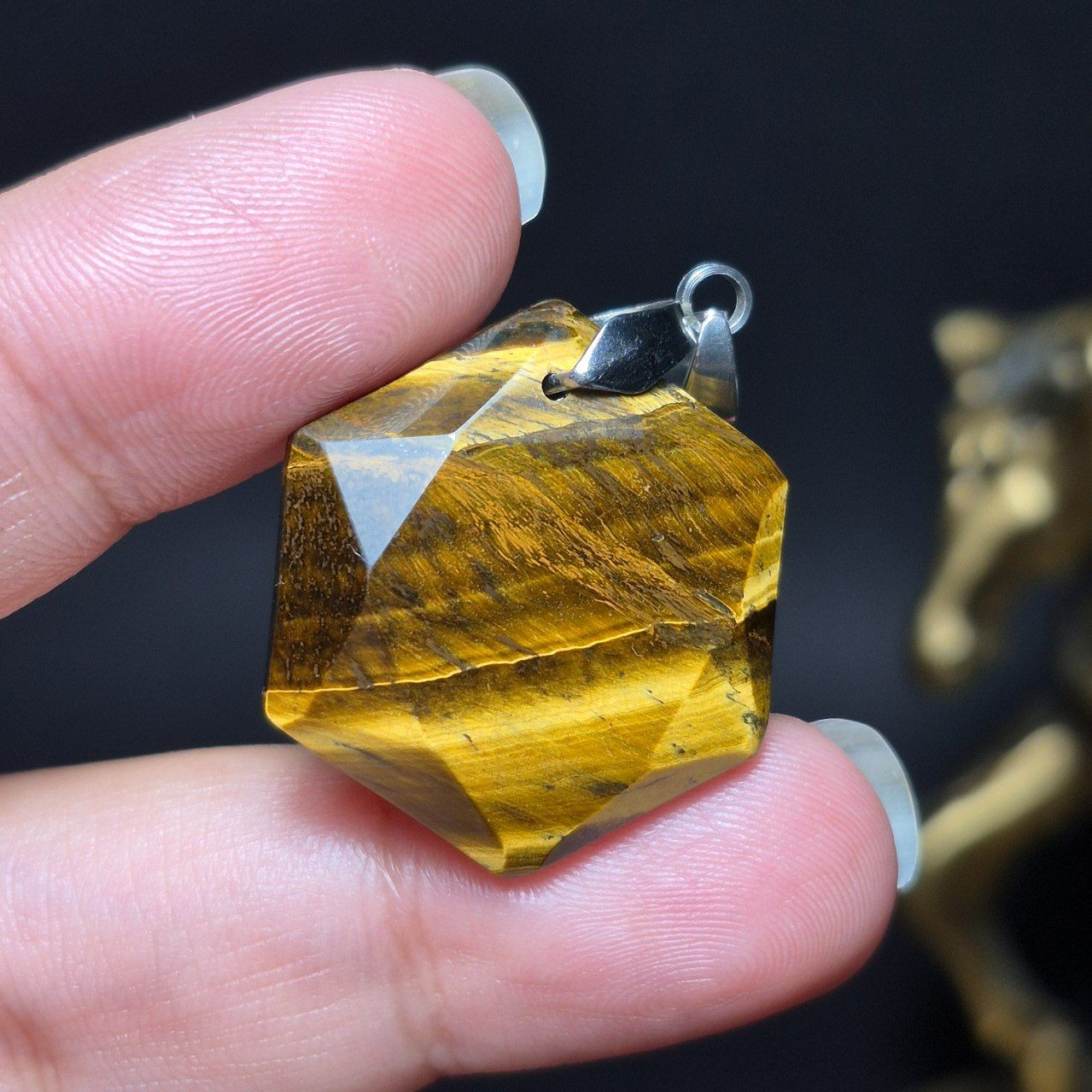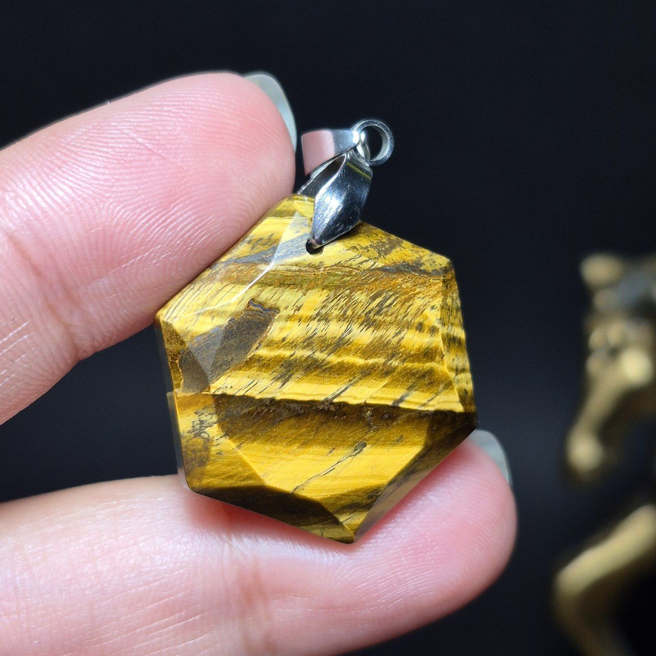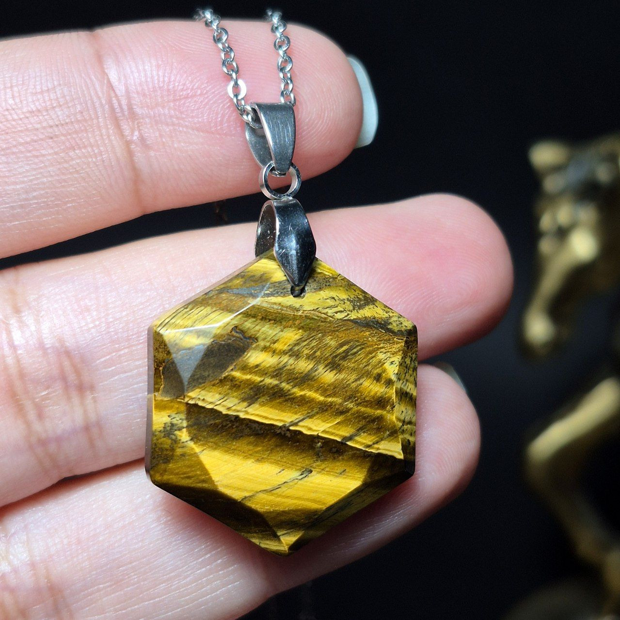 آویز گردنبند سنگ چشم ببر معدنی کد Z7134