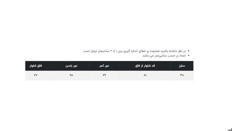 - جنس الیاف: 99.1% نخ پنبه، 0.7% پلی استر، 0.2% ویسکوز