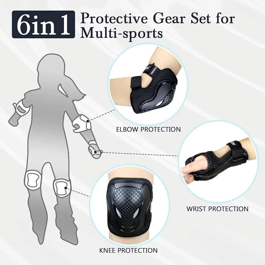 اگر به دنبال محافظت کامل برای فرزندتان هنگام اسکیت، دوچرخهسواری یا اسکوترسواری هستید، ست 6 تکه AresKo بهترین انتخاب است! این مجموعه شامل 2 محافظ زانو، 2 محافظ آرنج و 2 محافظ مچ دست است که ایمنی و راحتی را در کنار هم فراهم میکند.