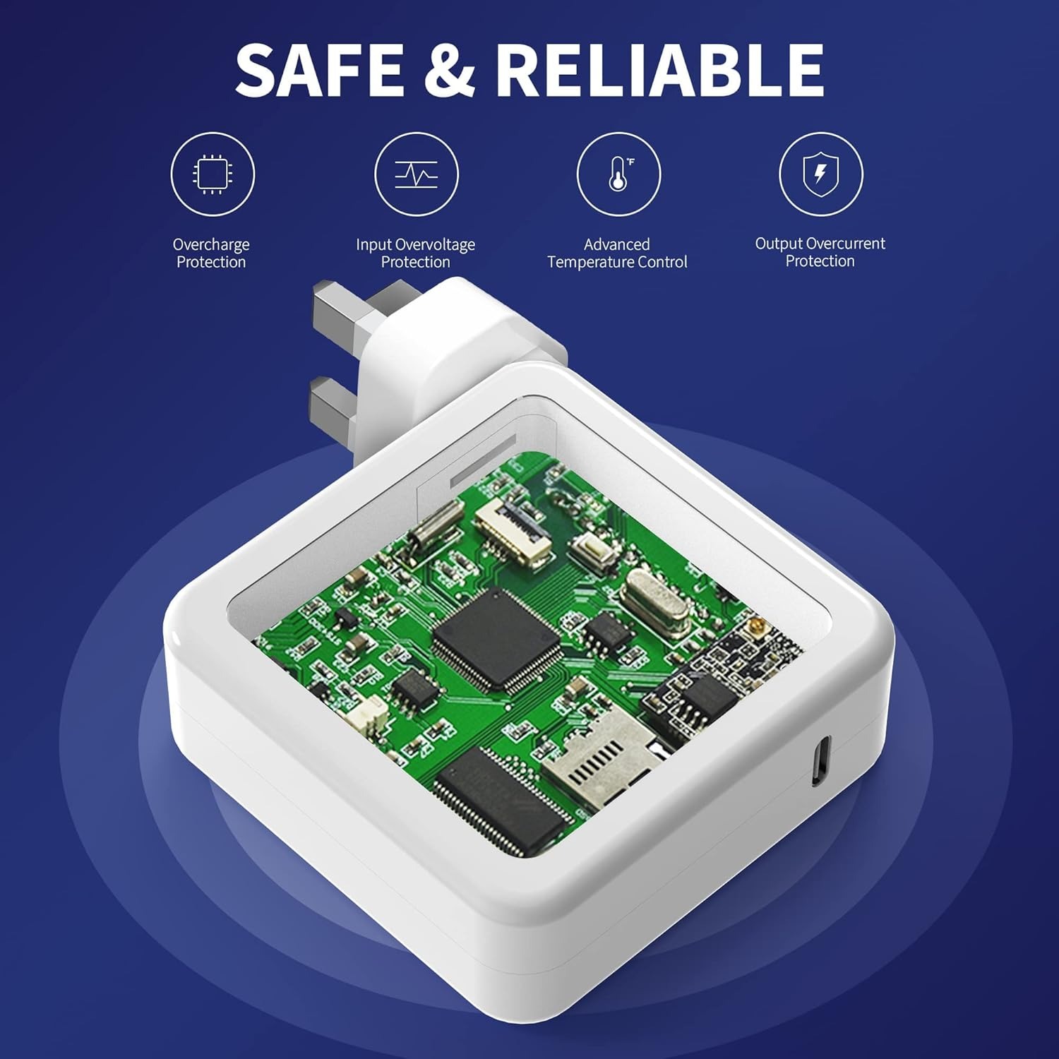ایمنی تضمینشده: دارای محافظت هوشمند چندگانه در برابر جریان بیش از حد، ولتاژ بالا، دمای زیاد، اتصال کوتاه و اضافهبار است. همچنین با دارا بودن گواهینامههای CE و FC، از ایمنی کامل دستگاه شما اطمینان حاصل میکند.