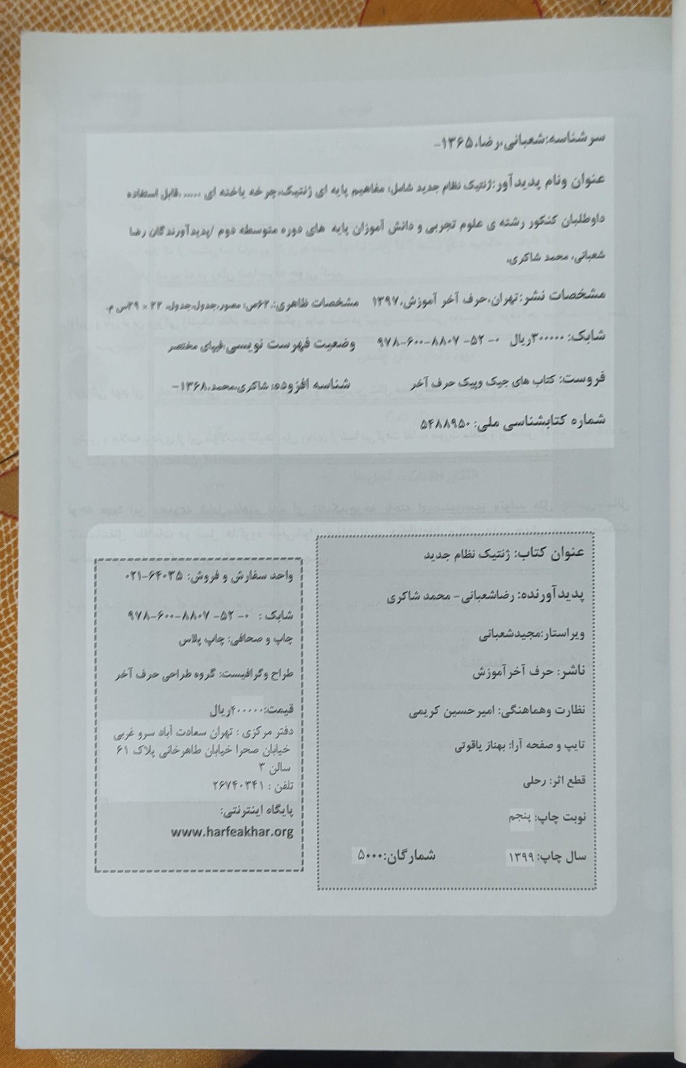 | نوع چاپ کتاب | چاپ اصل |