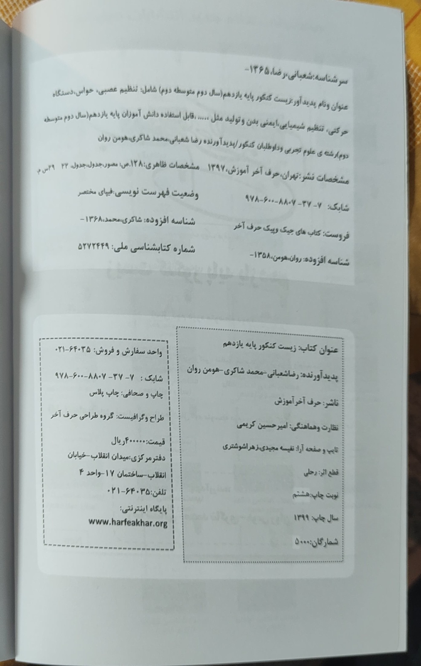 | نوع چاپ کتاب | چاپ اصل |