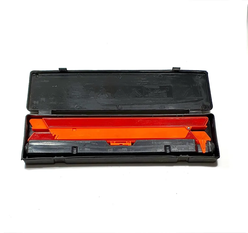 مثلث خطر خودرو به همراه کیف پلاستیکی ، قسمت لبه کیف پلاستیکی شکسته و خم شده که در عکس چهارم مشخص شده است