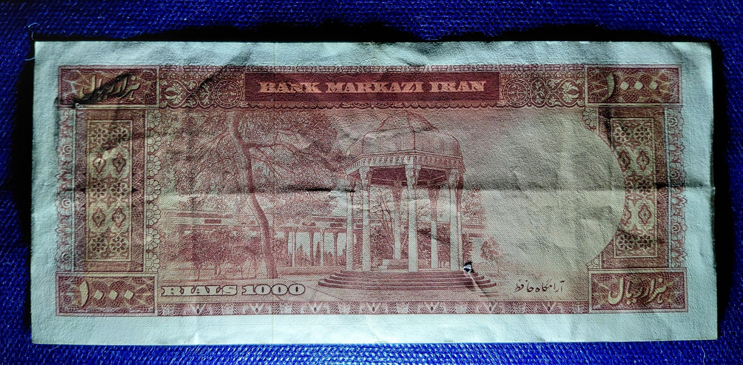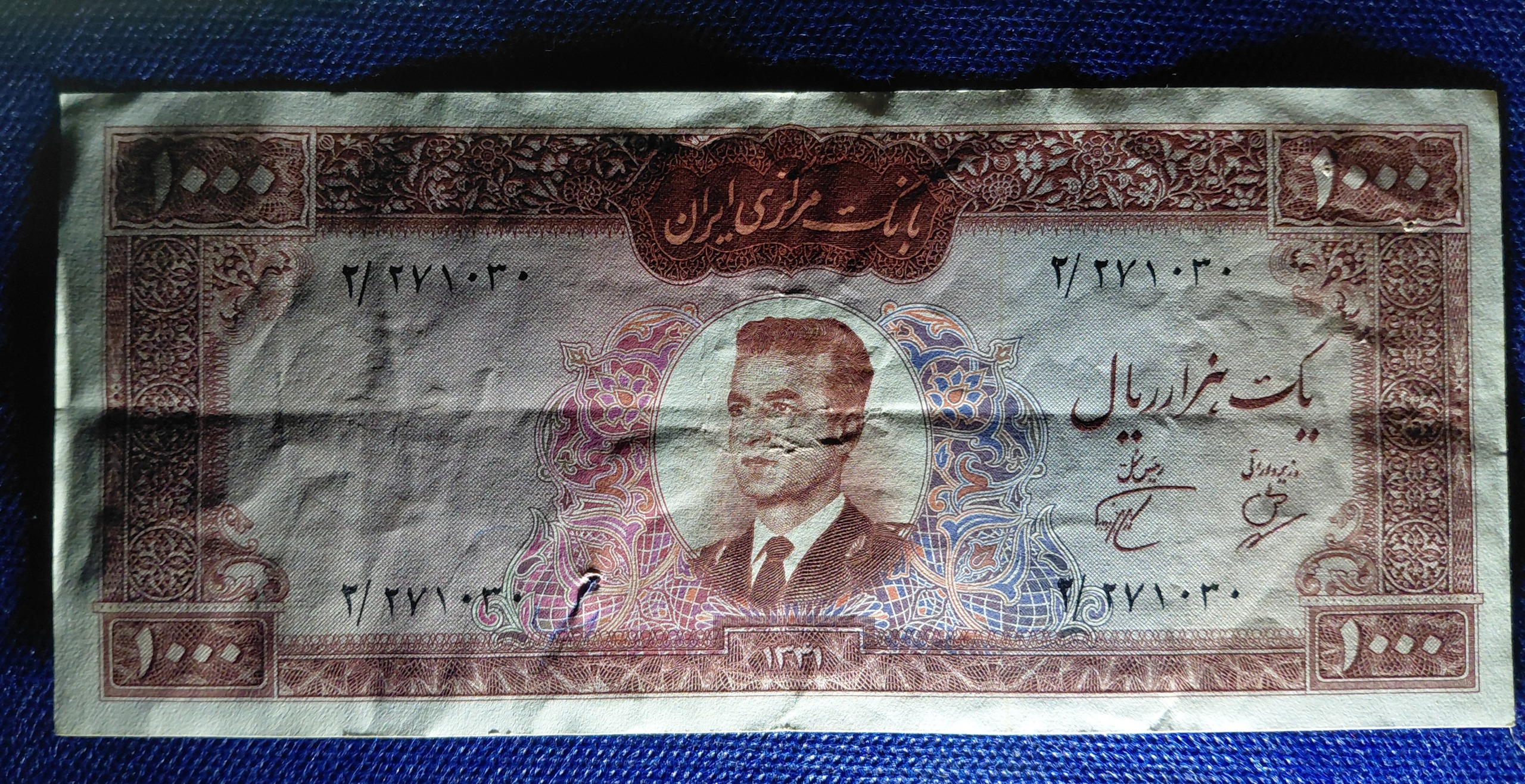 1000 ریال عکس وسط تا دارد و یک سوراخ و خودکاری