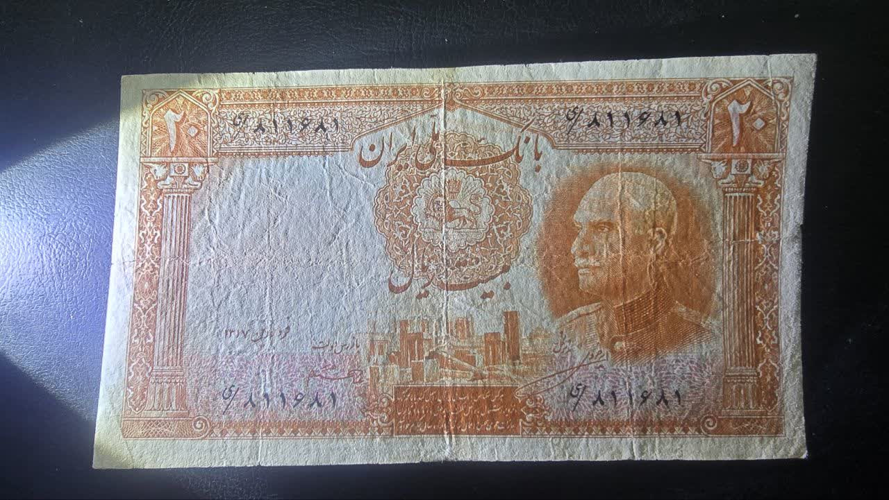 اسکناس 20 ریال رضاشاه کیفیت عالی کاغذ خشک