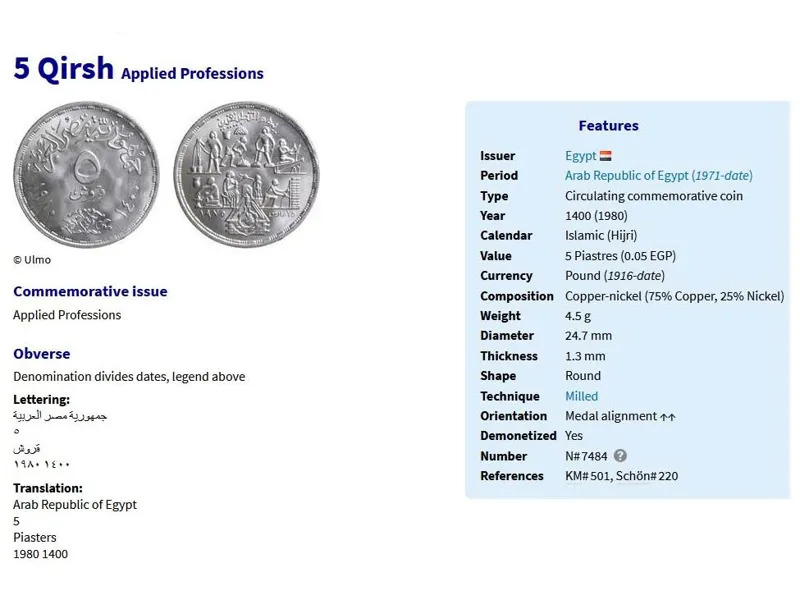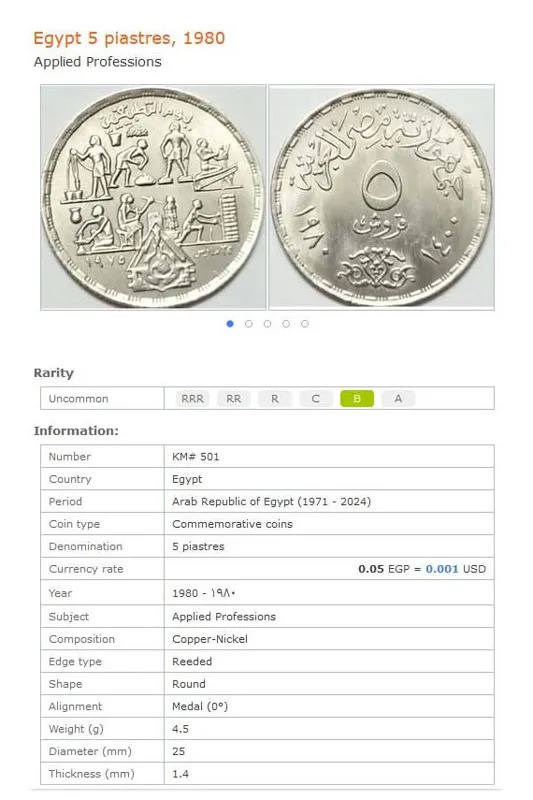 سکه یادبودی 5 قروش مصر 1980 (نایاب) 1