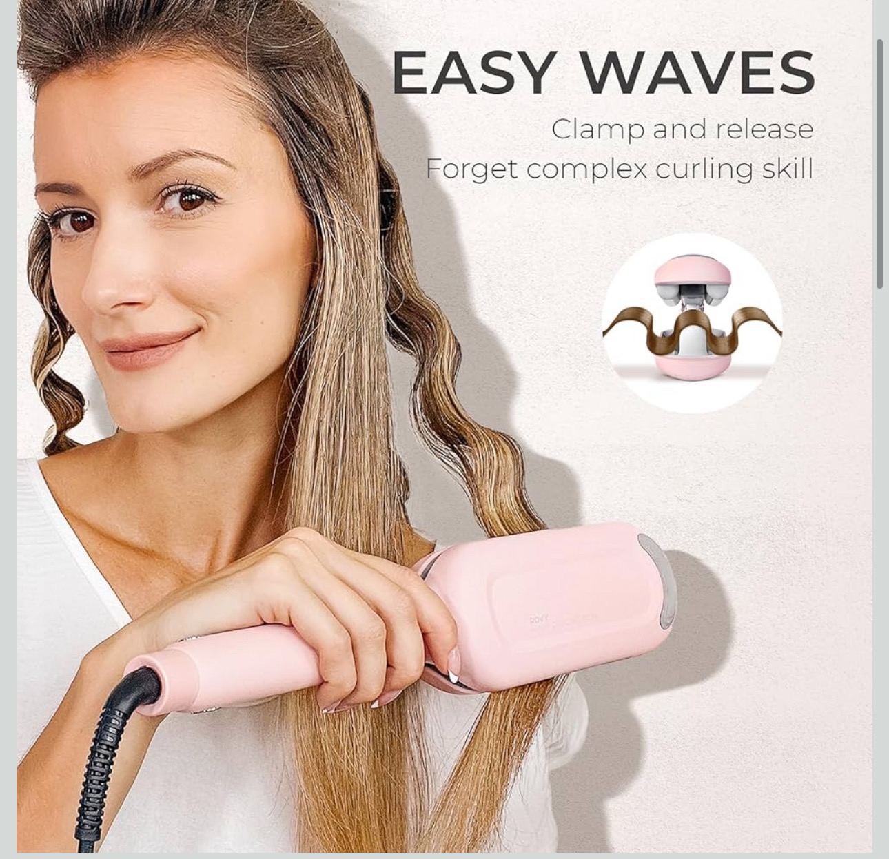 فرکننده موی فرکننده - عصای فرکننده موجهای ساحلی TYMO ROVY، ابزار فرکننده موی عمیق یونی با 3 لوله سرامیکی برای خانمها، ولتاژ دوگانه، ضد سوختگی، استفاده آسان،رنگ صورتی،