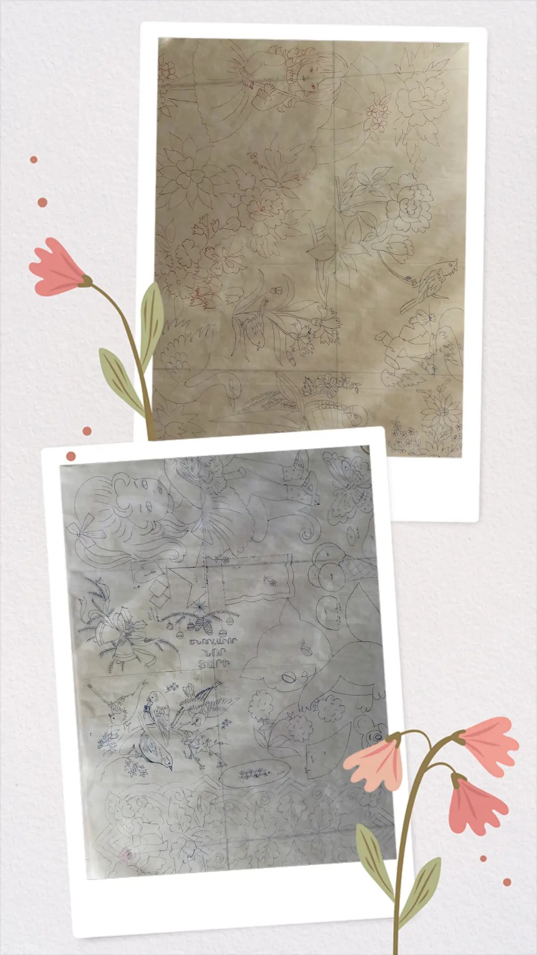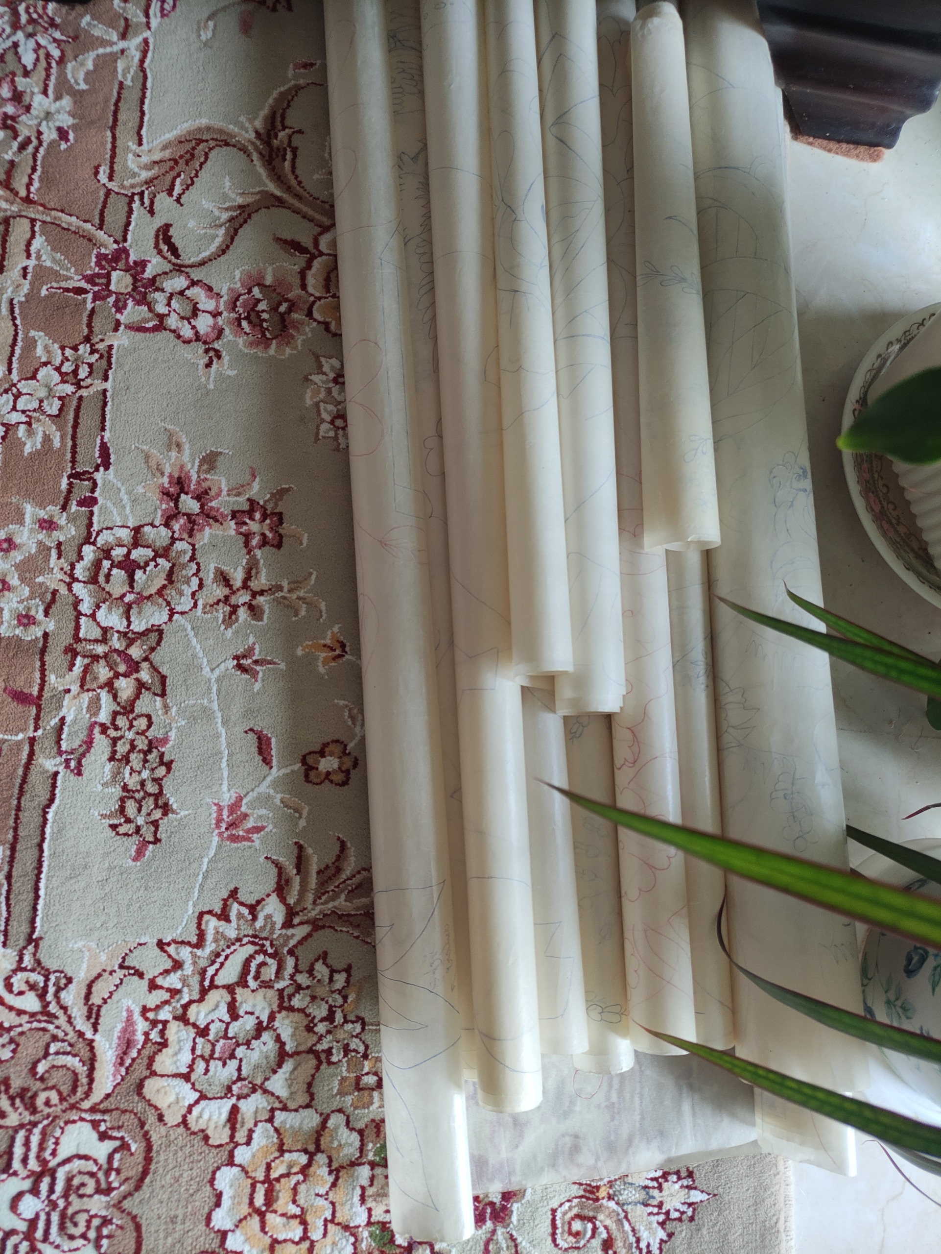 طرح های یک متری 7 عدد نیم متری دو عدد روی کاغذ روغنی توجه کنید کاغذ روغنی خام اینها فقط دونه 30 الی 40 تومن پولش بوده کار خیلی زمان برده تا کشیدن