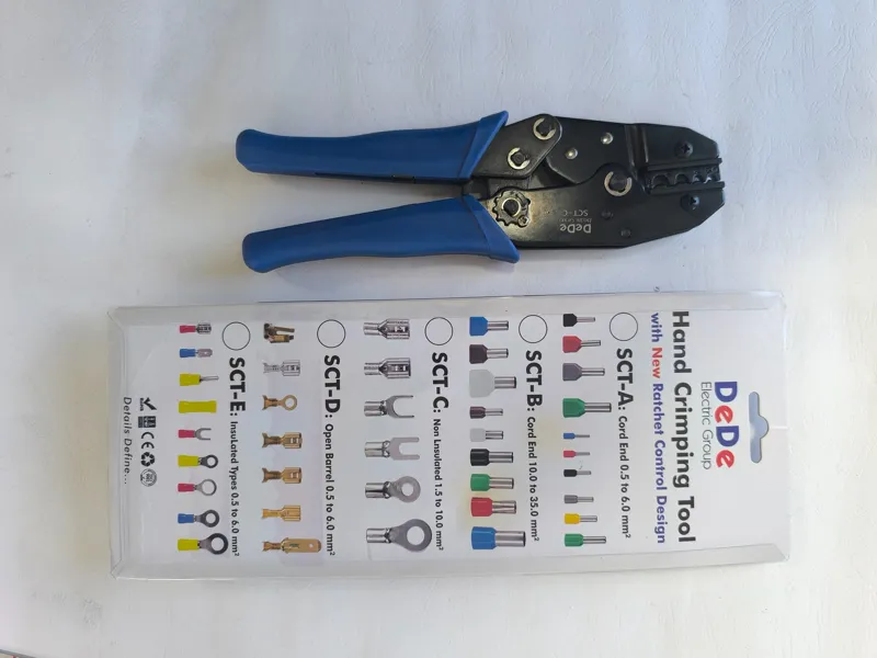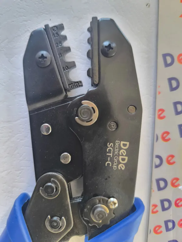 ابزار پرس سرسیم و وایرشو با قالب قابل تعویض برند DeDe یک ابزار پرس نیمه اتوماتیک، جهت پرس انواع اتصالات به سیم استفاده می گردد. این ابزار، دارای عملکرد چرخ دنده ای (ratchet mechanism) جهت حرکت اهرم ها تنها در یک مسیر هنگام بستن آنها به منظور پرس ترمینال، و قابلیت خلاصی کامل اهرم ها جهت باز شدن ابزار و قالب ها پس از انجام پرس (disengage option) می باشد. طراحی قالب این نوع ابزار ها، از نوع قالب های باز می باشد، بدین معنی که قالب ها دو تکه (سمبه و ماتریس) می باشند و پس از انجام پرس، کام از یکدیگر جدا می گردند.