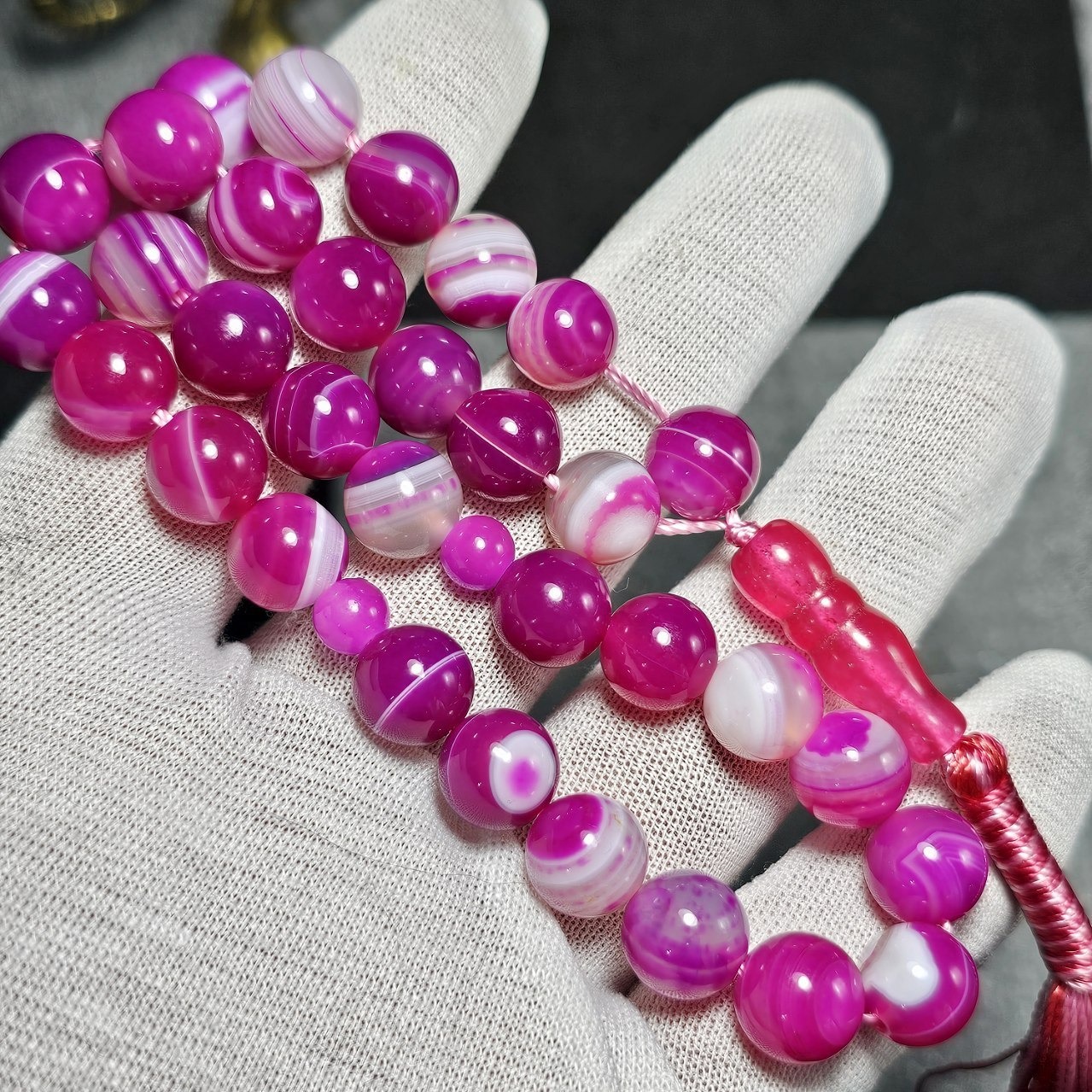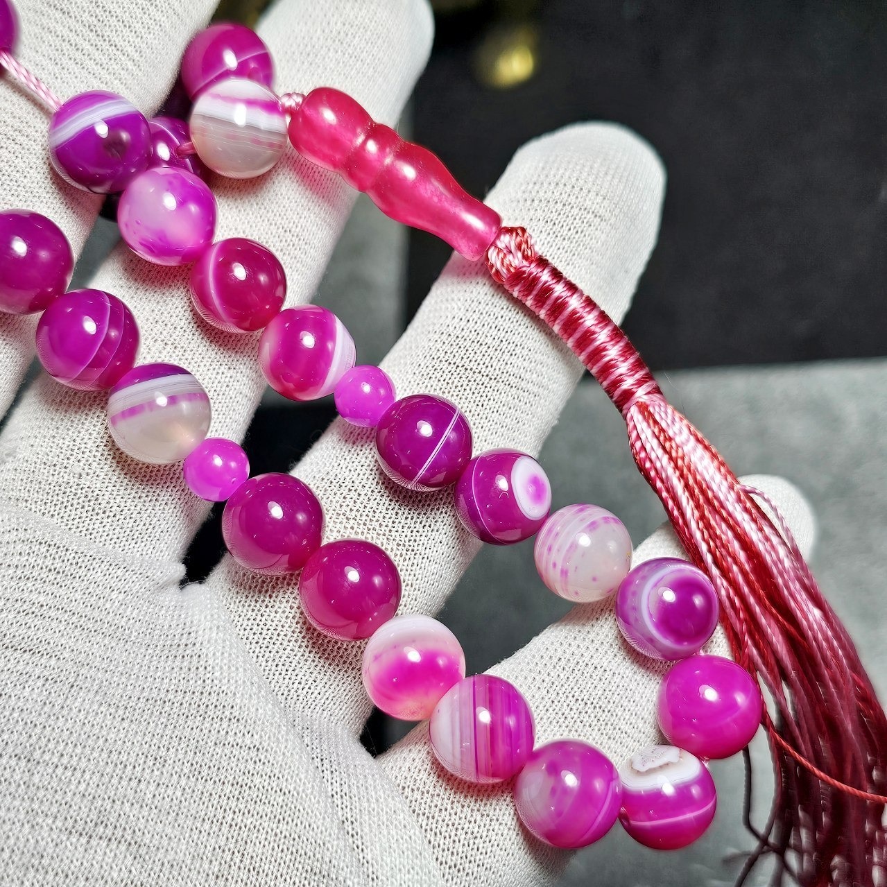 تسبیح 33 دانه عقیق صورتی باباقوری معدنی
