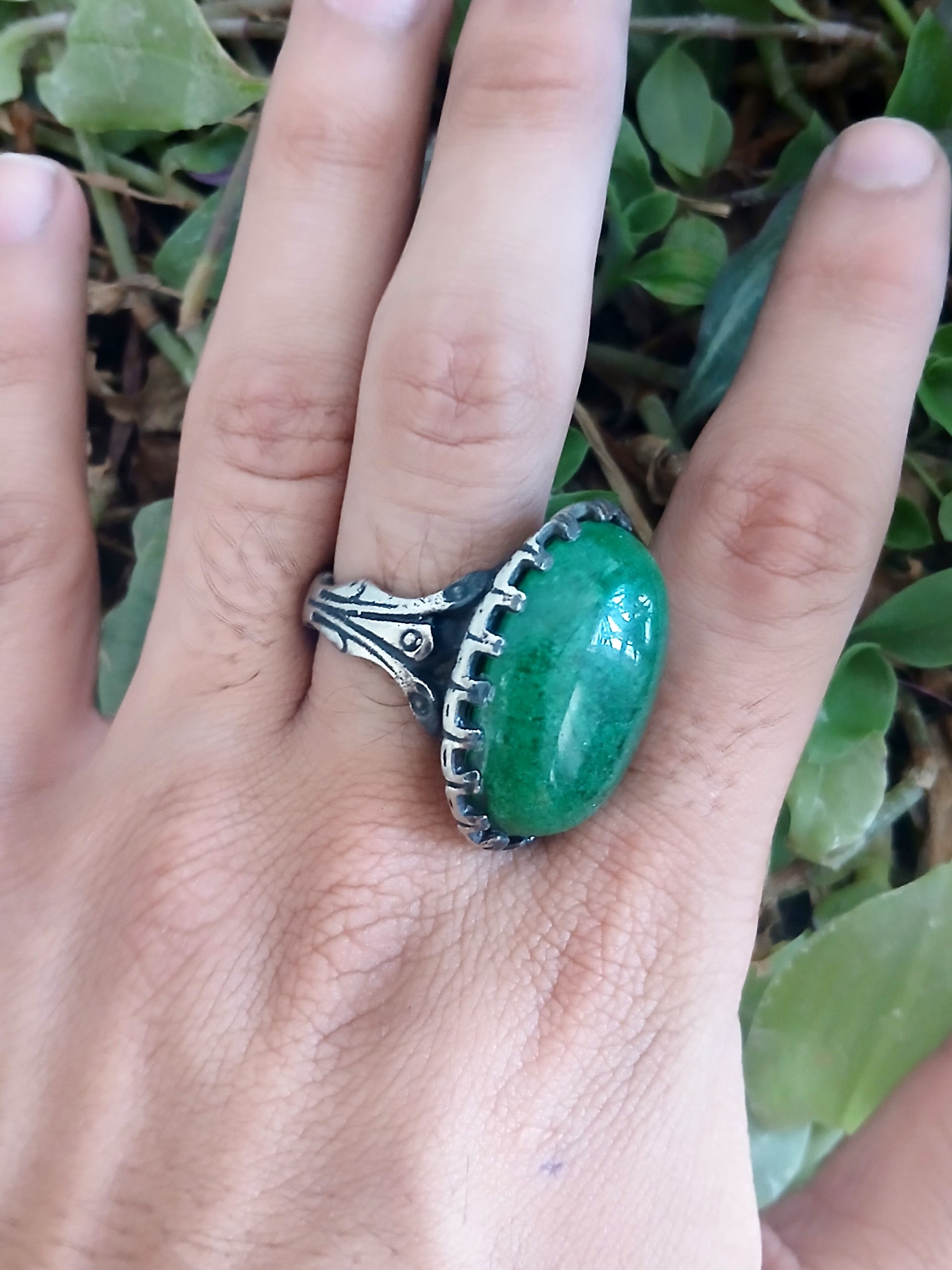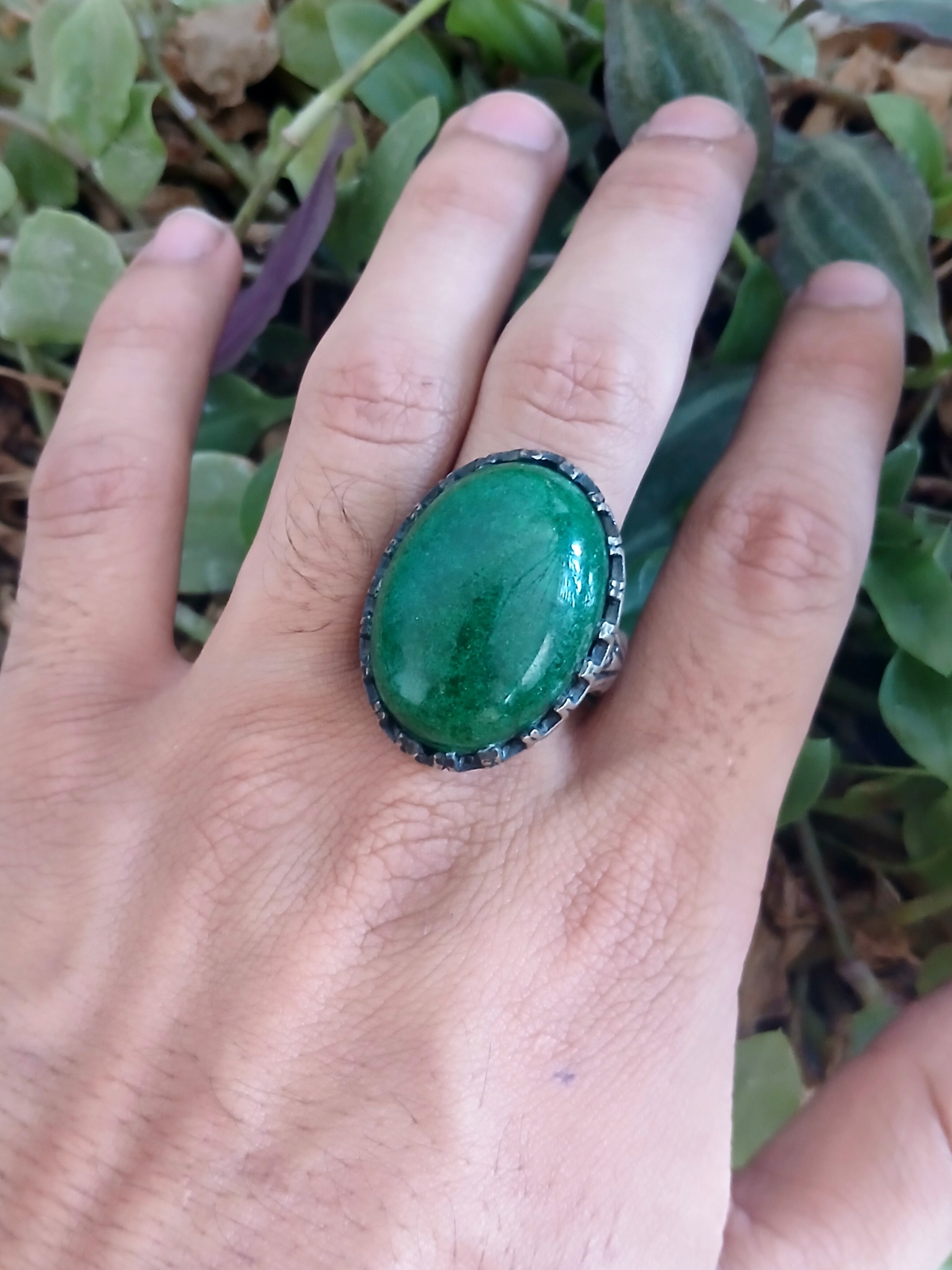 انگشتر جید سبز زمردی درشت و زیبا