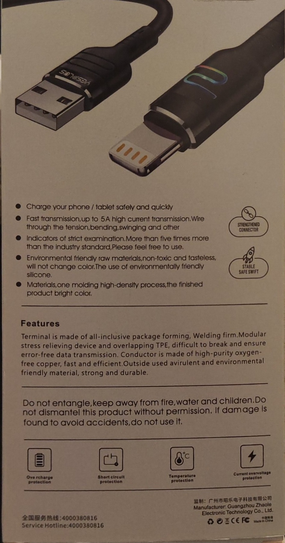 کابل شارژ آیفون led دار 5آمپر 30وات اورجینال