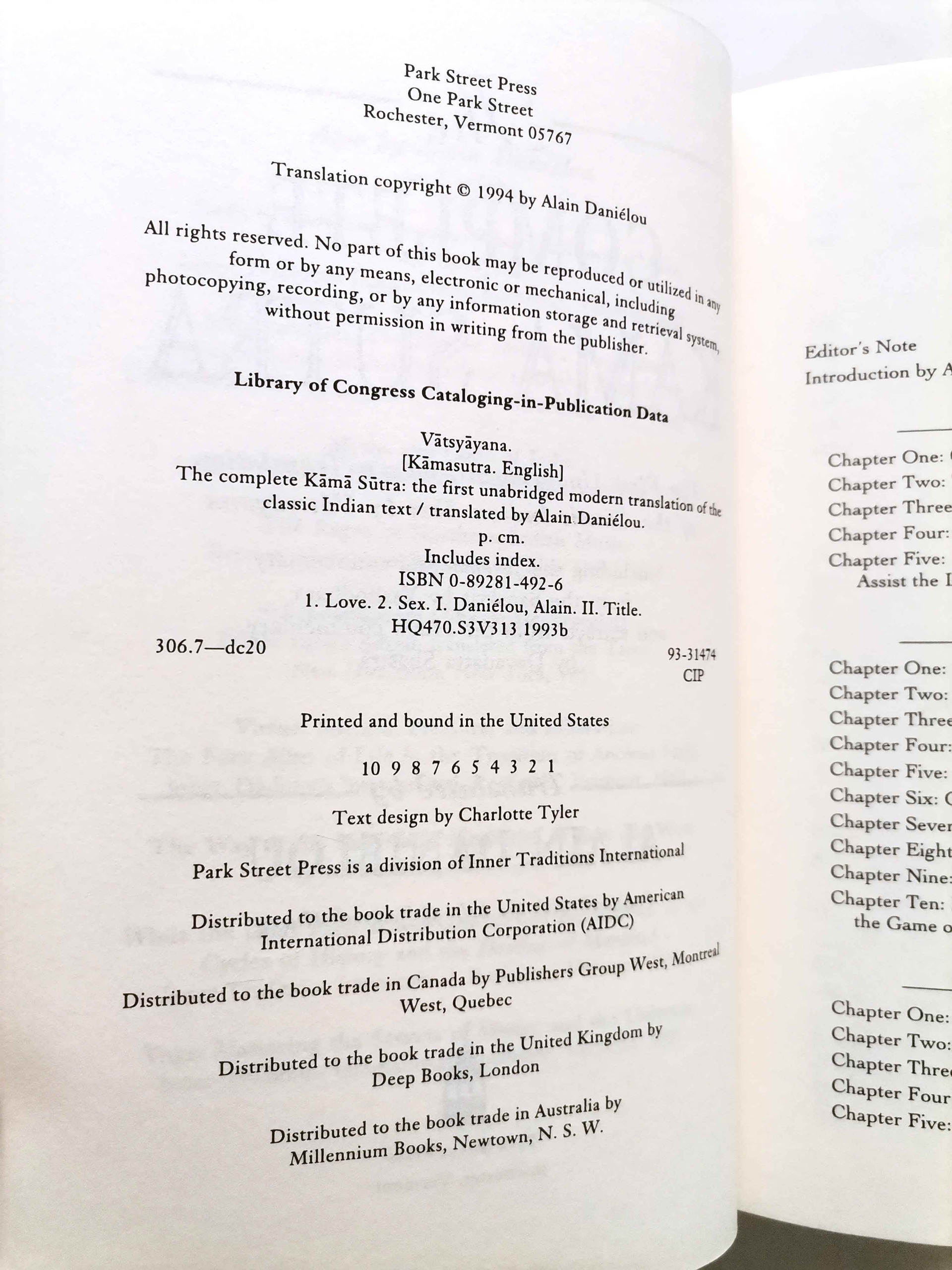 "Danielous elegant rendering includes not only the entire sutra, much of which is excluded in other versions, but two essential commentaries as well. More than just a pillow book, the Kama Sutra is a guide to the labyrinth of sexual etiquette, from how to bathe